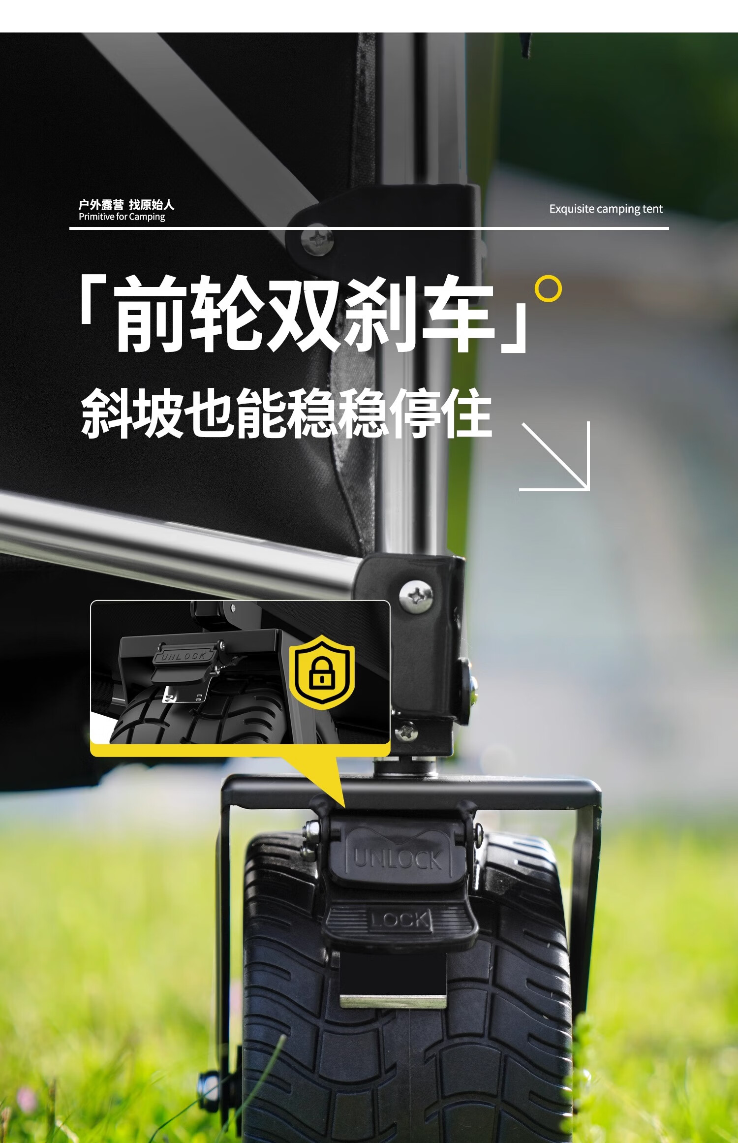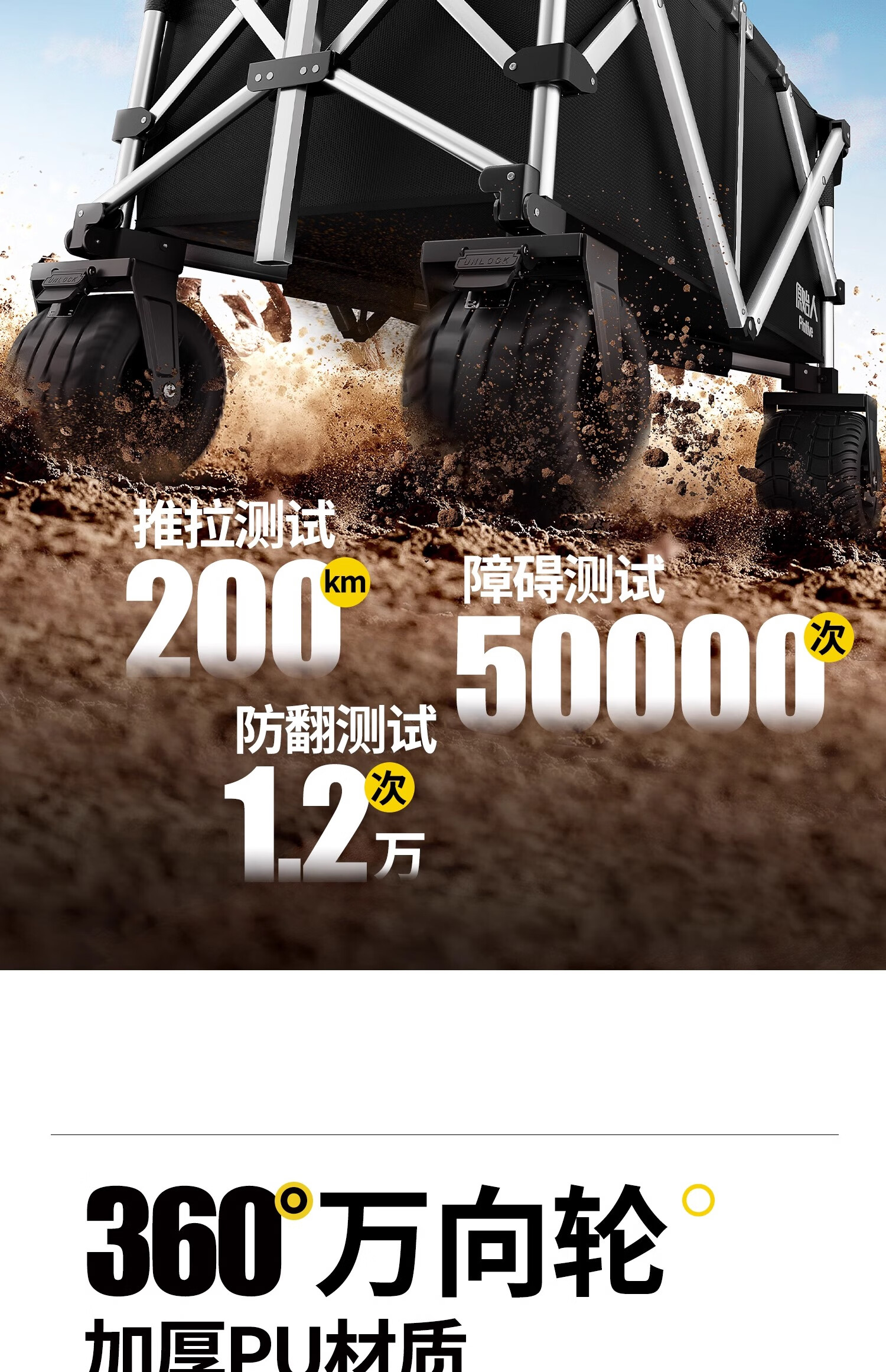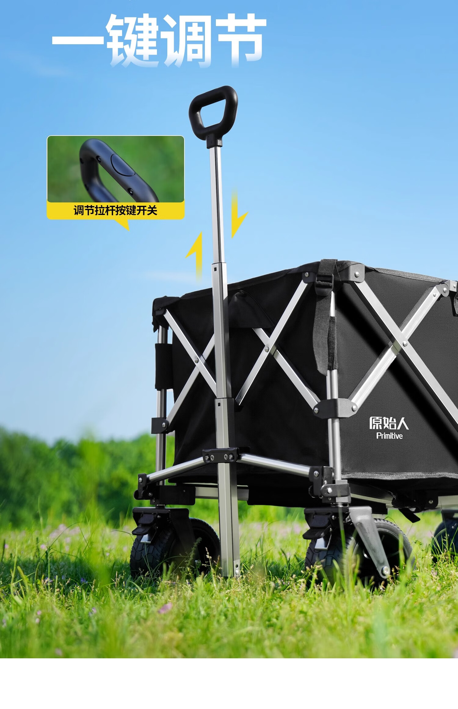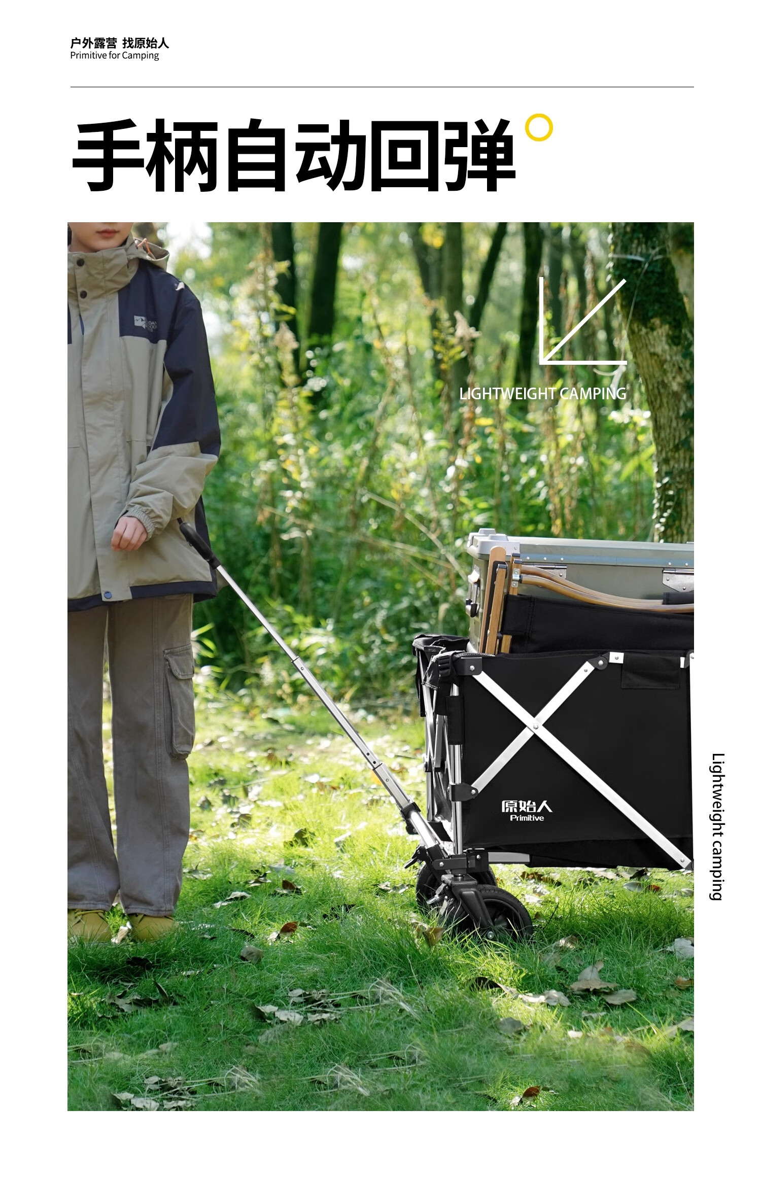 原始人露营推车营地车超大铝合金户外折叠野营野餐桌板遛娃手拉车拖车 220L 卡其棕【10cm宽轮+双刹车】