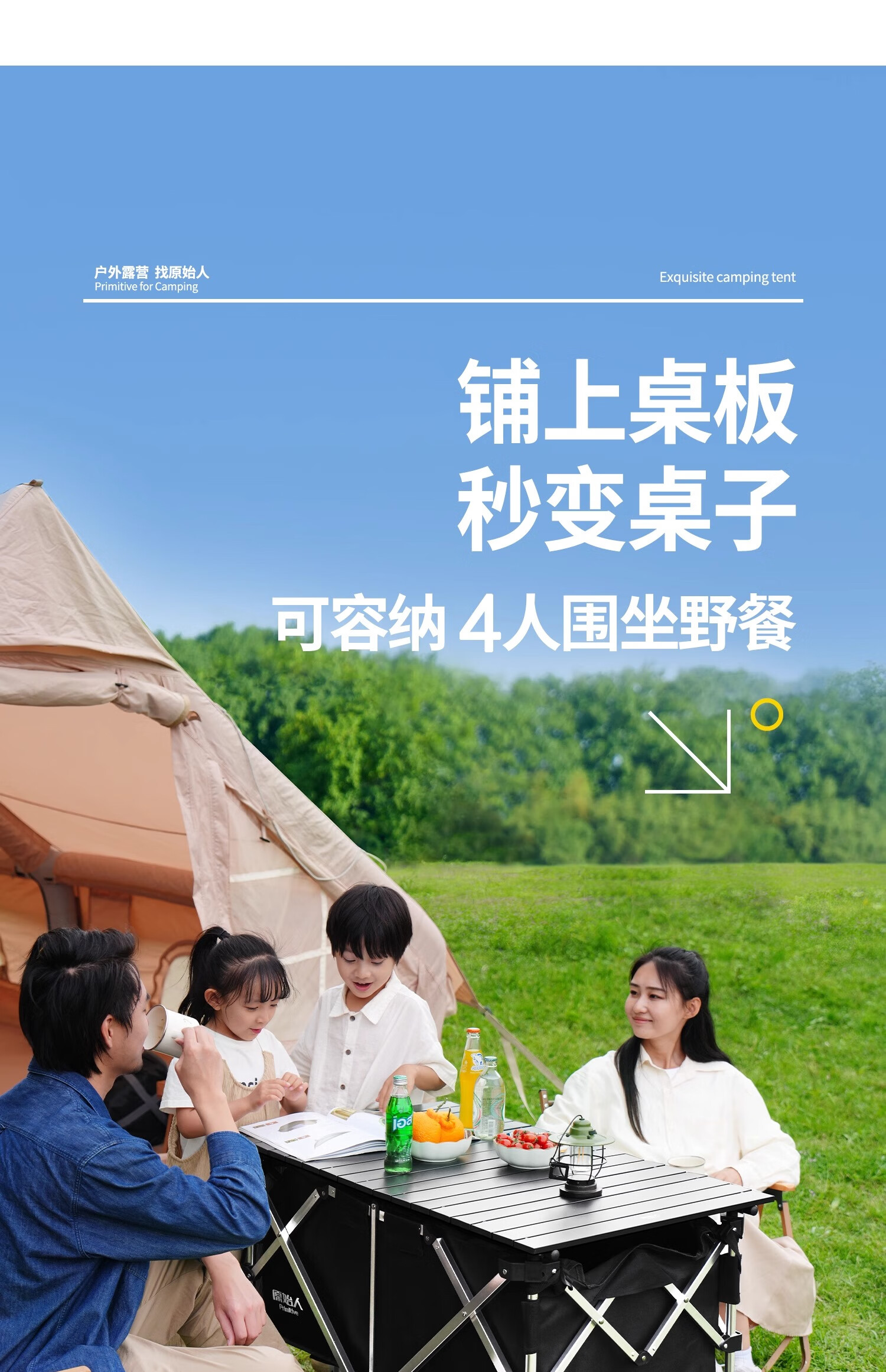 原始人露营桌椅铝合金蛋卷桌户外折叠桌便携桌子野餐用品装备全套 90款【双层双面】铝合金