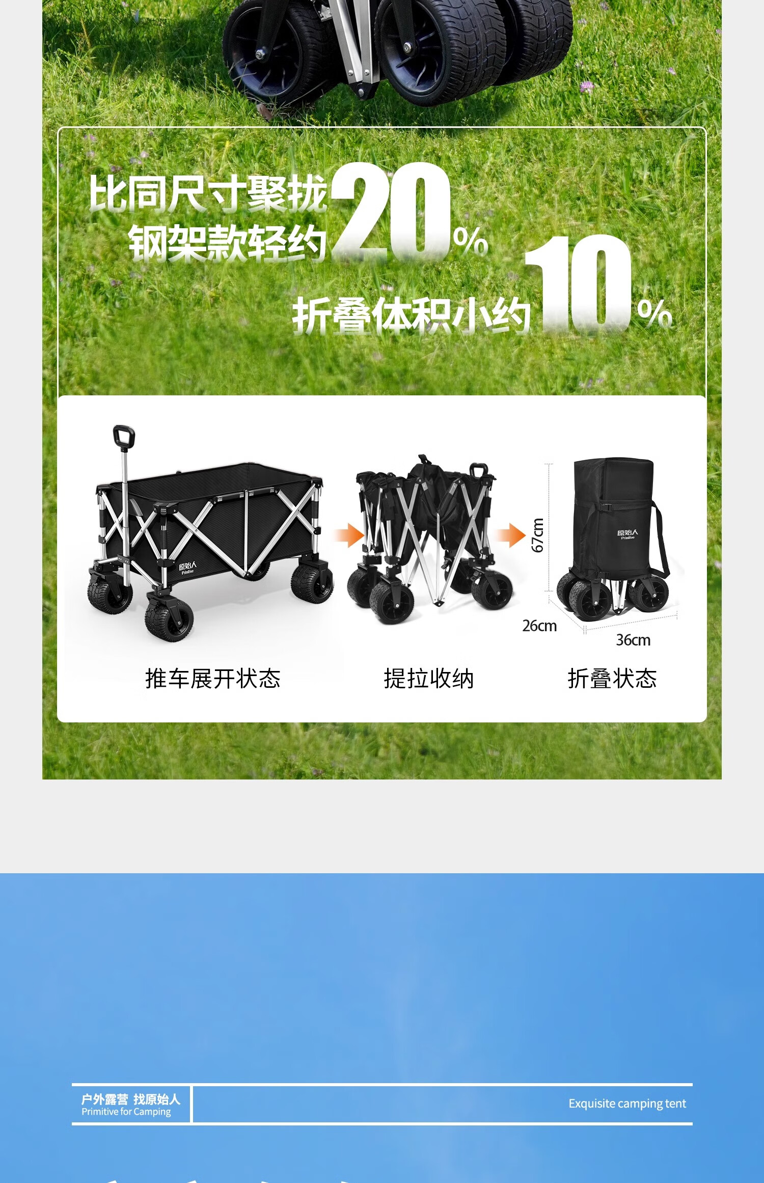 原始人这个品牌的产品值得购买!特地挑选了这款全铝合金露营车,一看用料就很扎实,超大的轮子,通过性很强,快递刚刚到家,就迫不及待的去驿站取了快递。 4个大件要是放在平时一根人根本不好拿,这不露营车里一放,直接拖回家,超级省力。出去踏青赏花,装备露营车里一放拉着就走。回到家里,一秒收纳,不占空间,还很贴心的做了一个可以手提的带子。一只手就能拎到里屋。