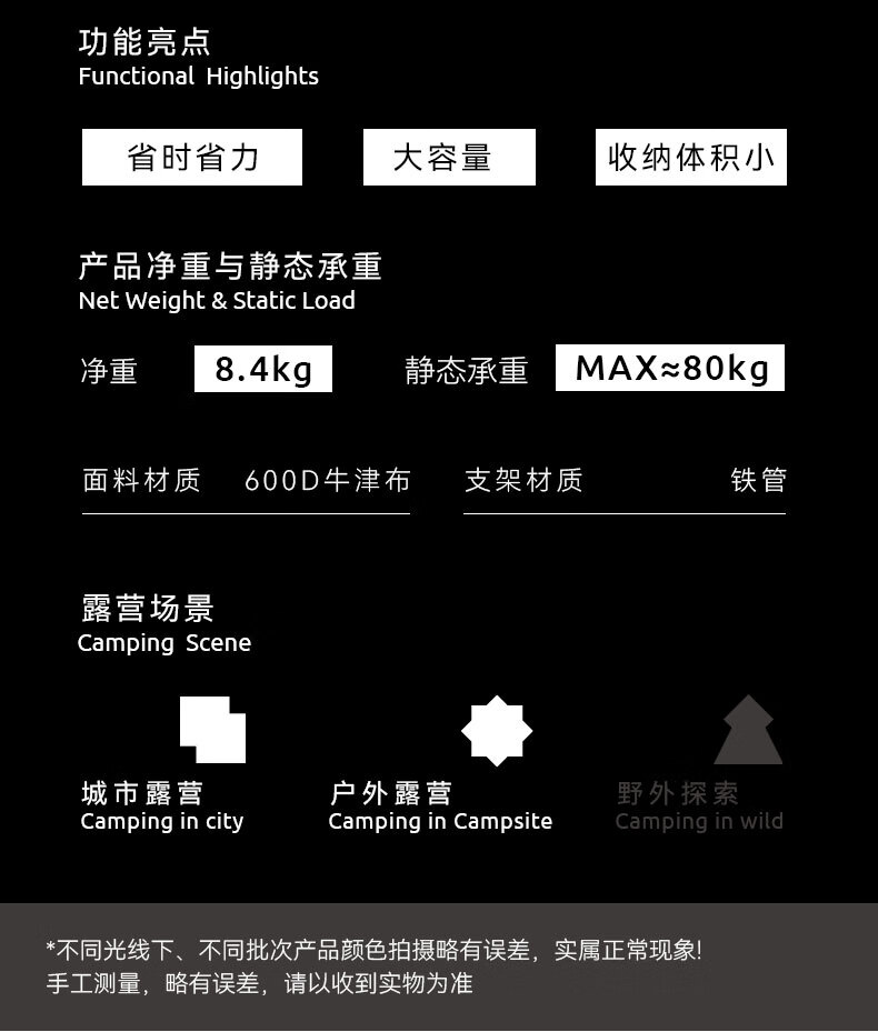 京东京造 150L聚拢型坦克轮可拆轮露营车专用配件遮阳棚雨棚