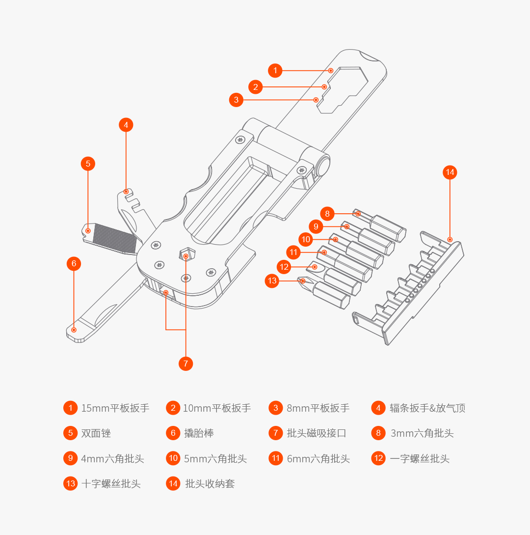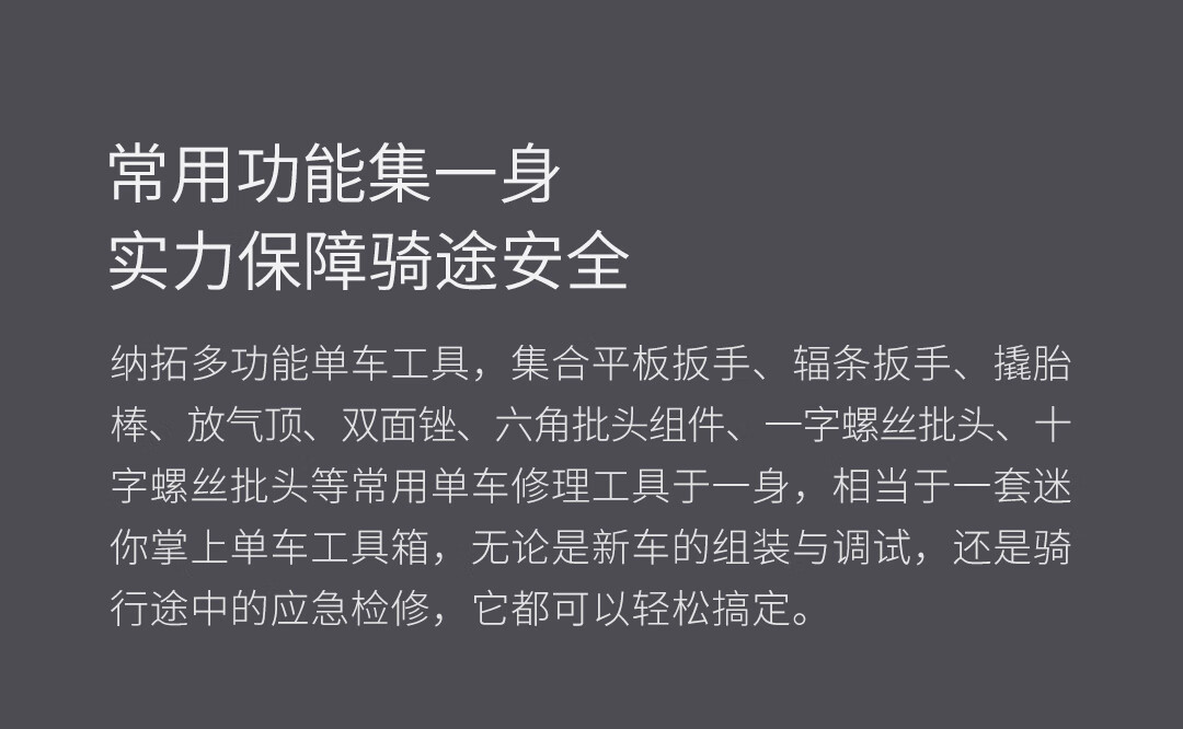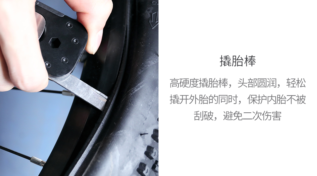 凑单买的 真就是应急修车,要是带几个塑料拆胎棒,辐条扳手和六角扳手在多几个规格,就更好了,临时应个急,要是能多点配件就更好了。