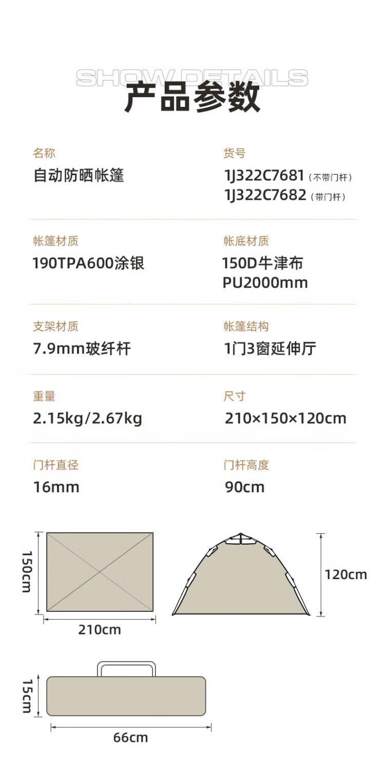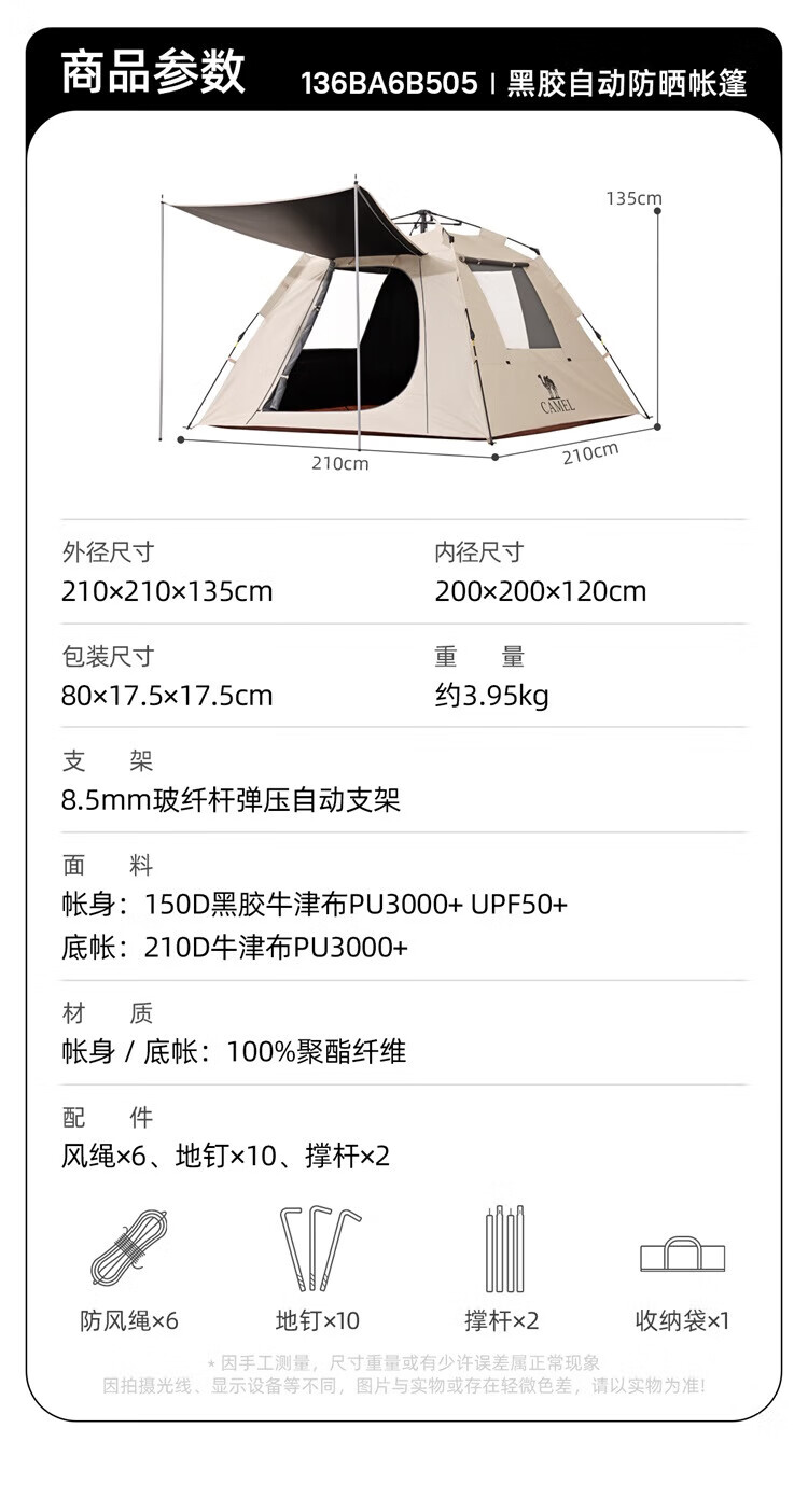 选了很久,最终决定买这个骆驼的帐篷,果然没让我失望,质量挺不错的,我自己一个人打开收纳起来都没有问题,很轻松。适合一家三口出去玩一下,小朋友很喜欢😍