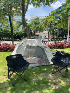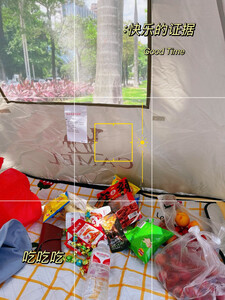 露营桌露营椅之前都已经买了,现在就剩一个露营帐篷,双11 果断出手,空间里面挺大的,里面躺两三个人没问题,就是稍微薄了一点点,防晒应该没问题,防雨就不一定了。