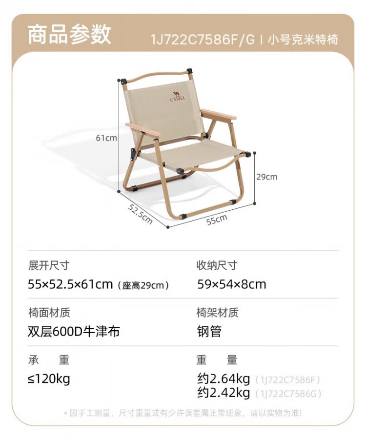 骆驼(CAMEL)户外折叠桌便携式露营桌椅套装碳钢野餐桌子蛋卷桌夜市摆摊 桌椅3件套 赠收纳袋 3009 鹅黄/米白