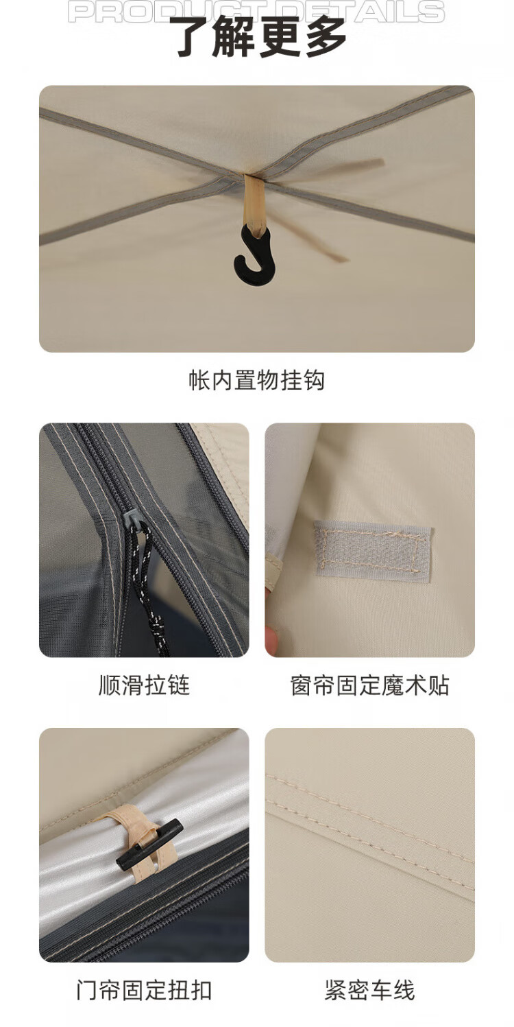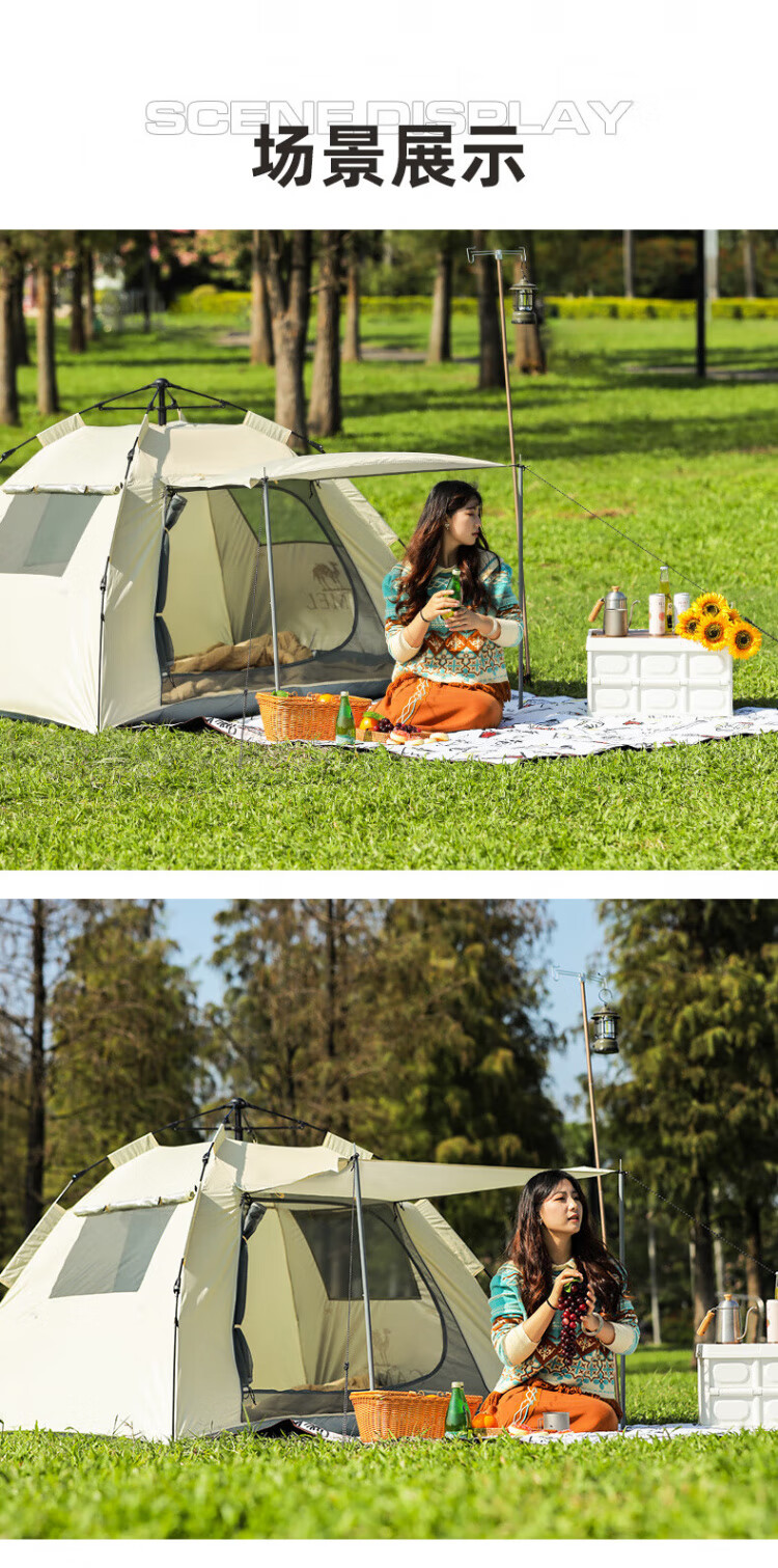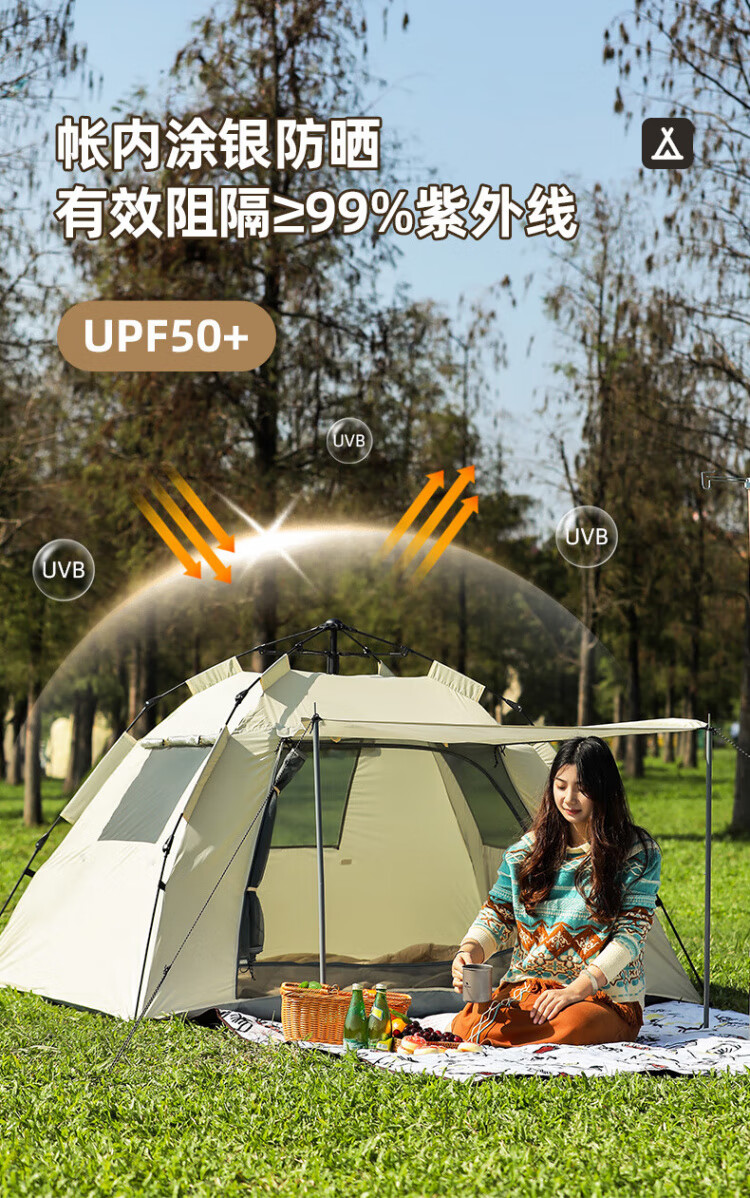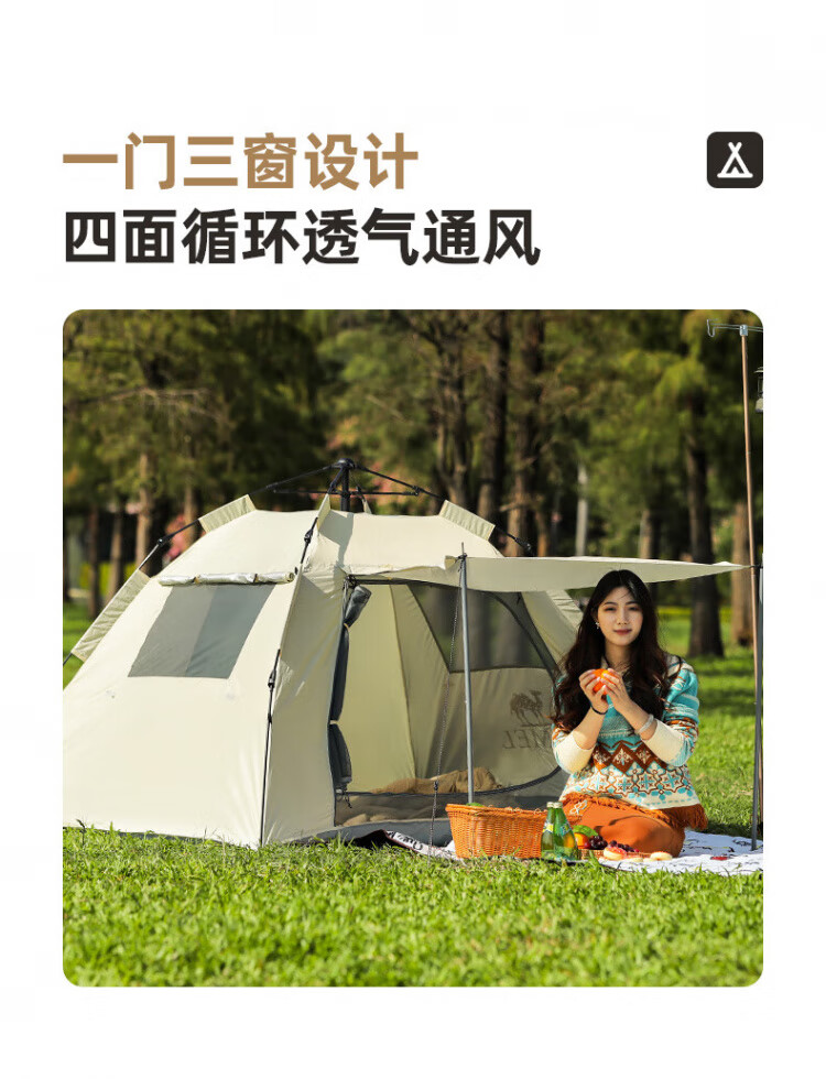 骆驼(CAMEL)【山房】帐篷户外天幕便携式折叠自动防风公园露营野外野营装备 休闲帐+桌椅三件套+防潮垫-奶酪色-不带杆