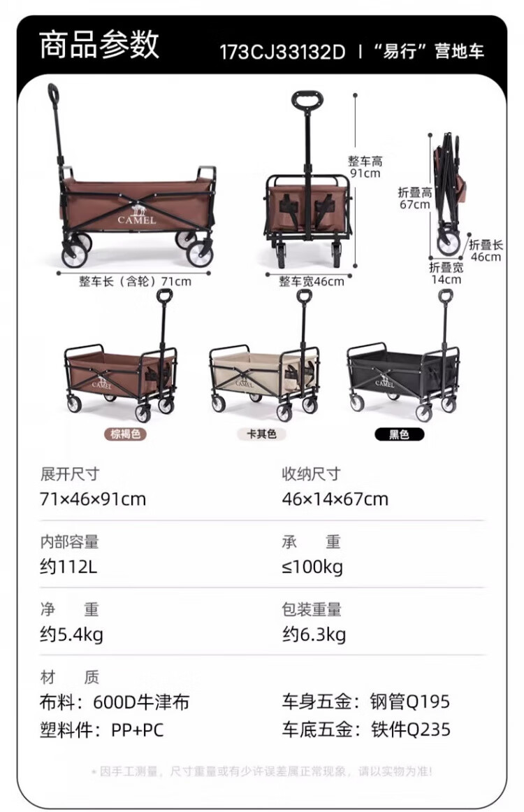 CAMEL露营车营地车折叠购物车坦克轮买菜车家用拉货取快递野营遛娃遛狗 平折收纳, 112L ,不焦绿,3132G