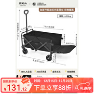 原始人露营推车户外营地拖车旅行可折叠手推野餐野营手拉车遛娃小拉车 160L 【曜石黑】升级加厚后开款