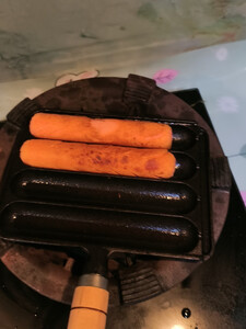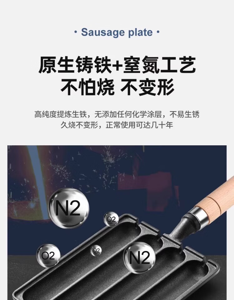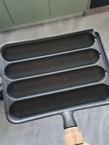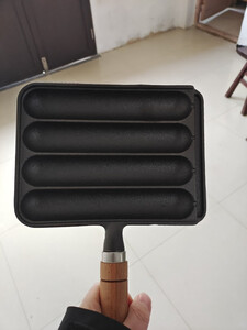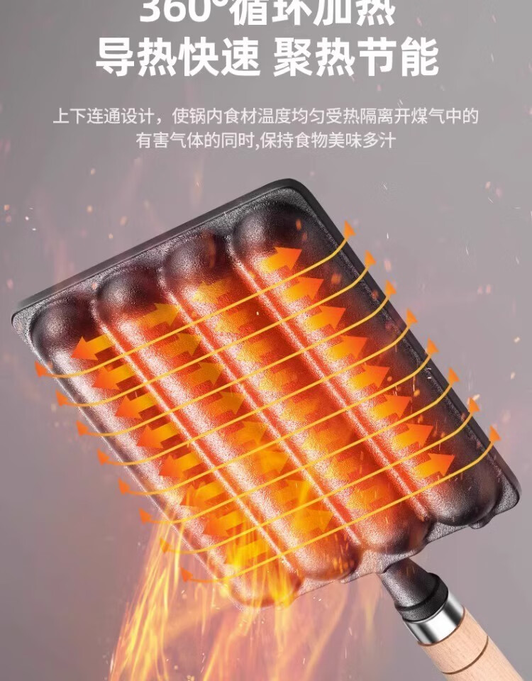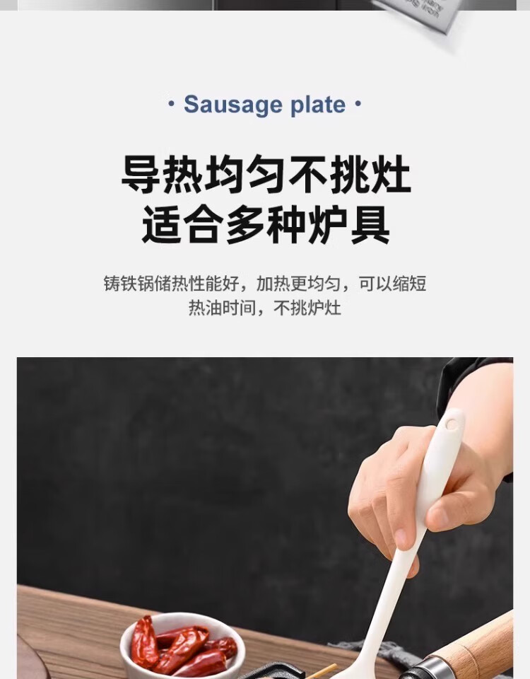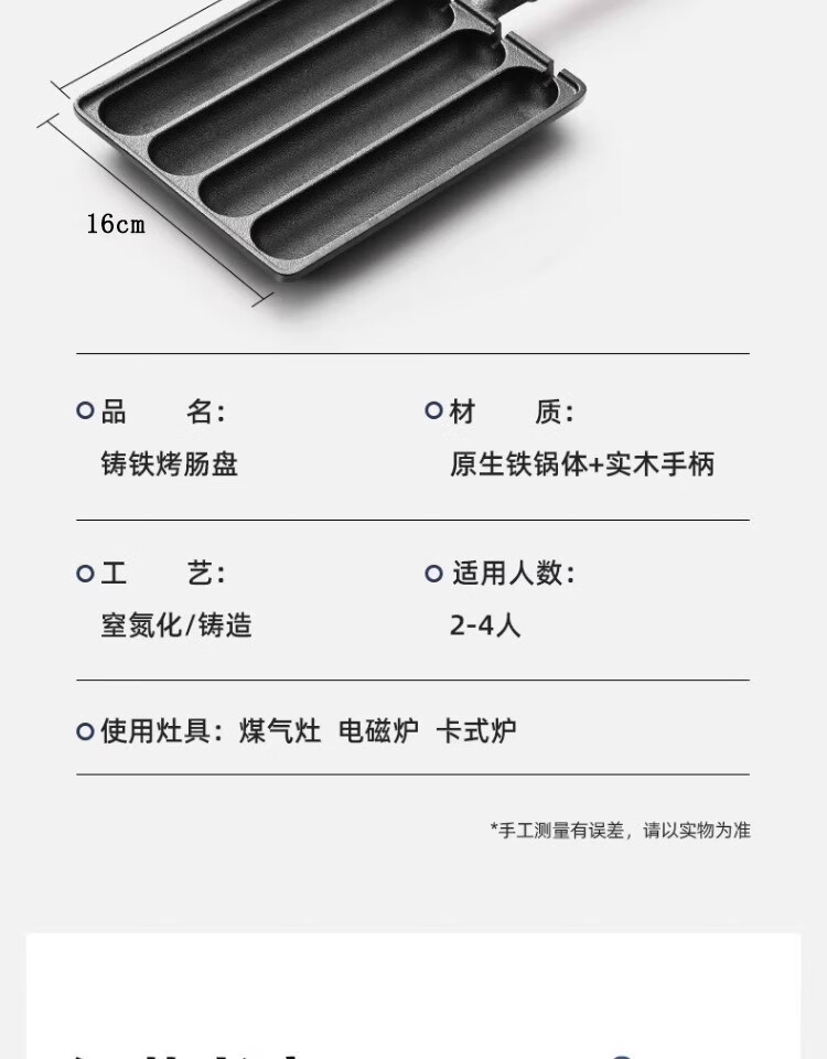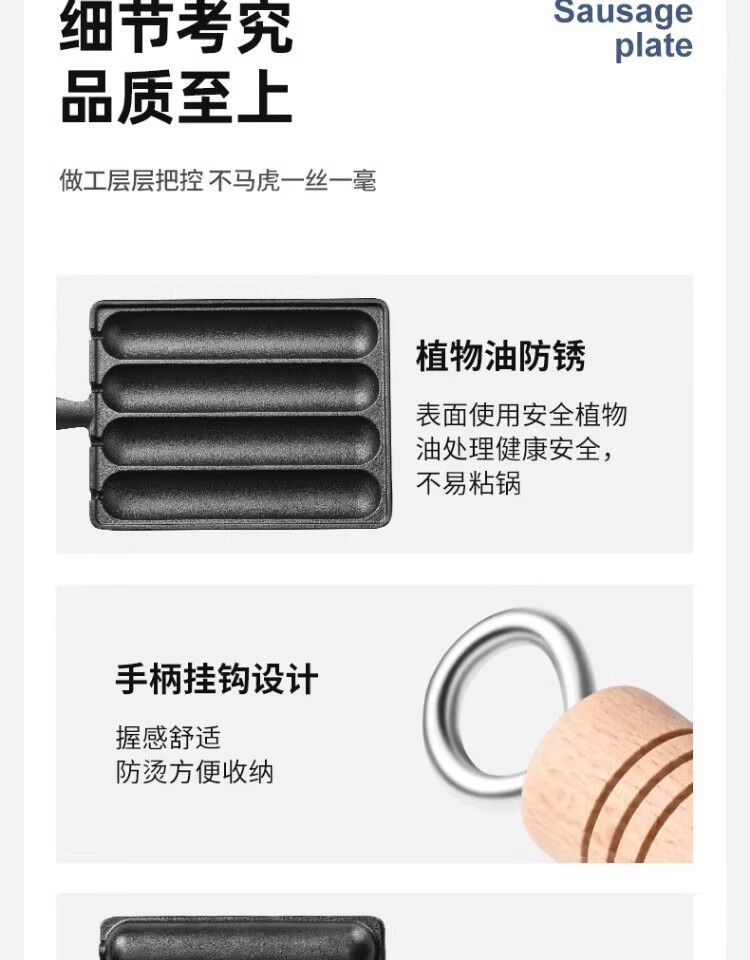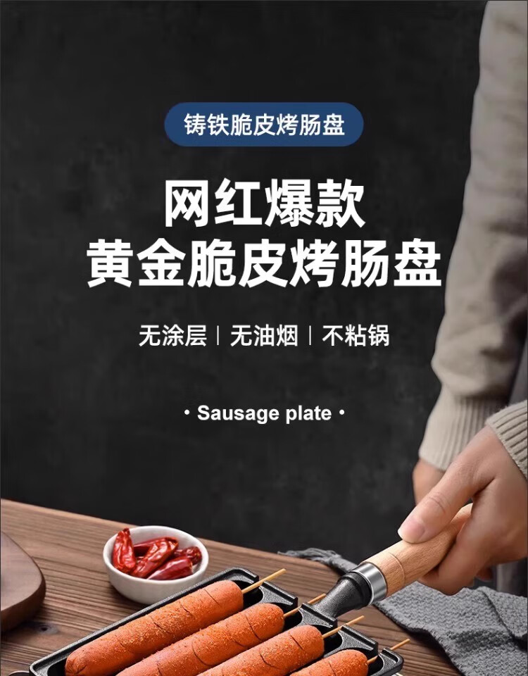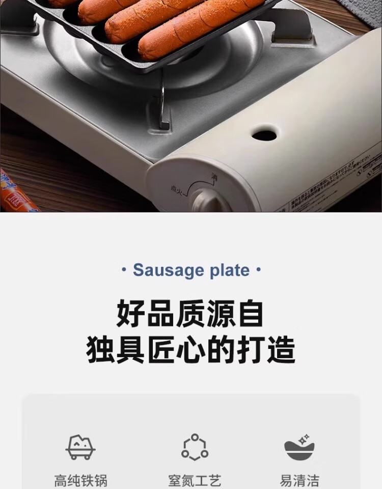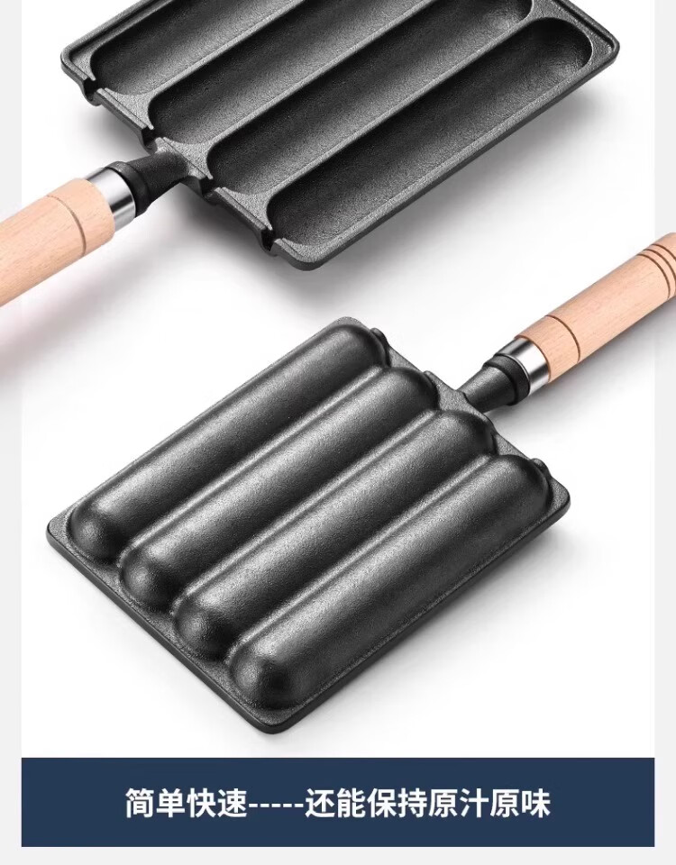 烤肠非常方便,纯铸铁材质,导热快散热慢,煎烤炸三位一体,都适用,真的推荐大家购买,超级好用,设计也超级贴心,有导油槽不会到处都是。