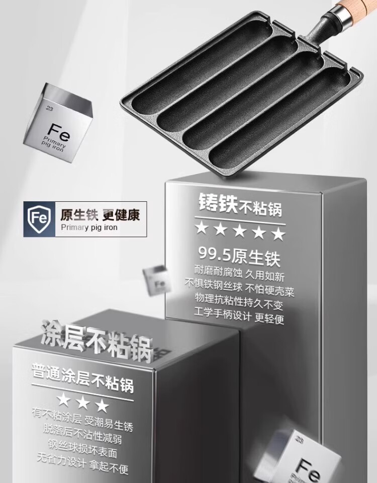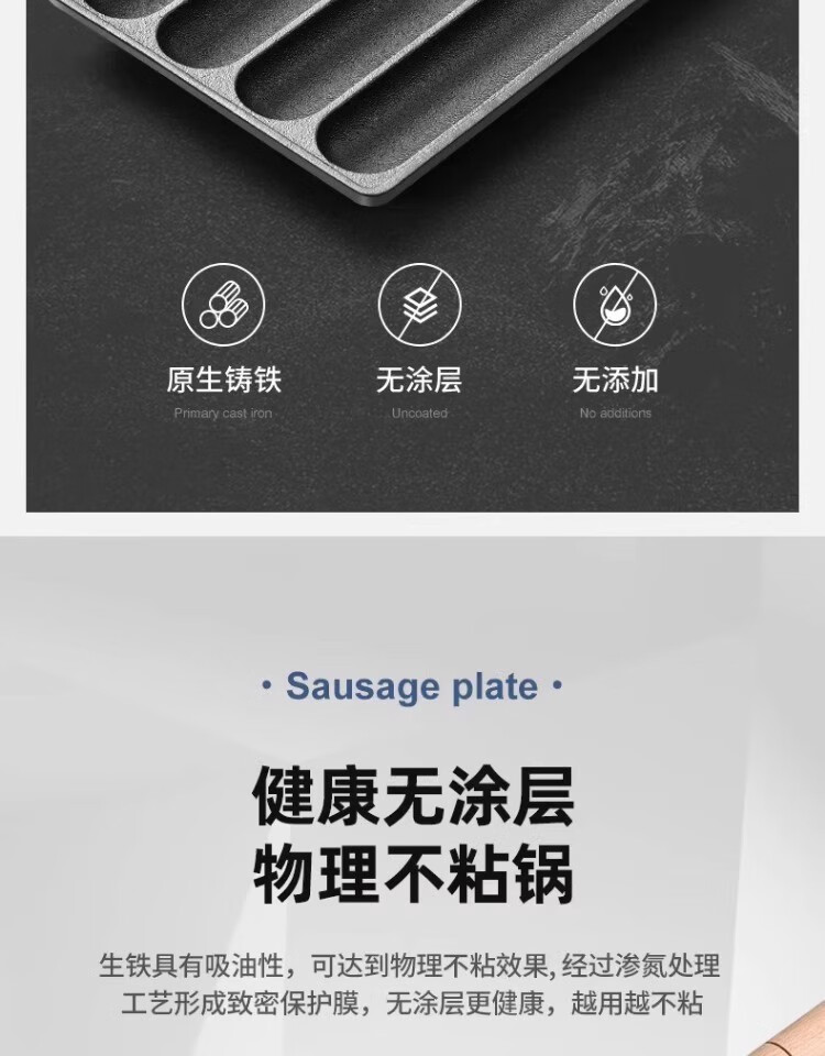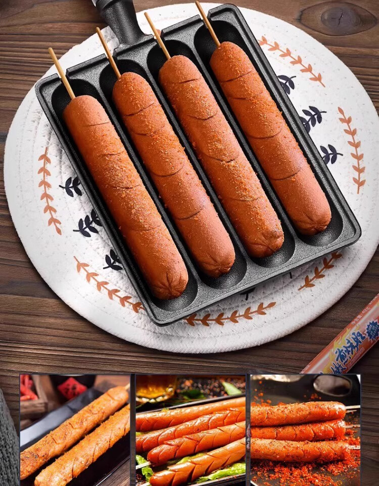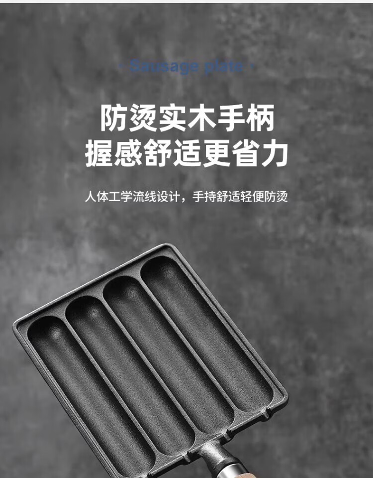 淀粉肠烤盘铸铁家用烤肠机烤肠锅烤鱼丸烤章鱼丸子火腿肠烤盘模具 烤肠盘【横款】