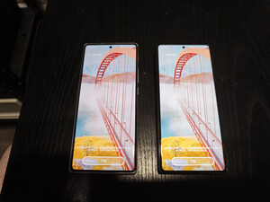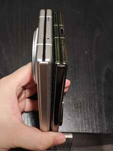 从Fold3 Pro换代到Fold5,虽然提前知道卖点就是更薄的机身,但真机到手的时候还是不由得夸赞一下,真是比预想的还轻巧,以前不觉得,现在再拿着Fold3 Pro就觉得确实有更强烈的坠手感了,而且Fold5周身都更圆润,比Fold3 Pro的确有着更好的手感,之前Fold3 Pro我个人最不喜欢的就是玻纤材质的后盖,就是高级塑料嘛,这次5终于又用上的玻璃,磨砂玻璃的手感就是不一样。要说缺点,Fold5的边框是亮面金属,不耐刮痕是一定的了,cpu的原地踏步,也是一个大槽点,只能说幸好我不玩游戏,希望系统能给力点至少日常使用能丝滑就好了。超声波指纹的取消虽然可惜,但终于可以放心的使用全胶玻璃膜了,也不功不过吧,希望明年Fold6能拿点好东西出来。