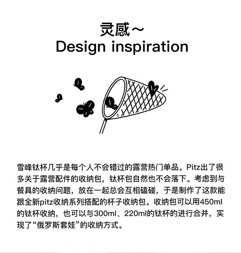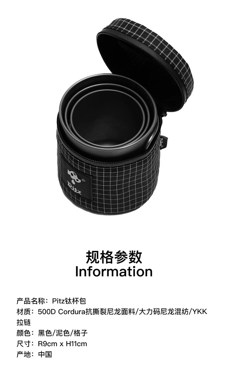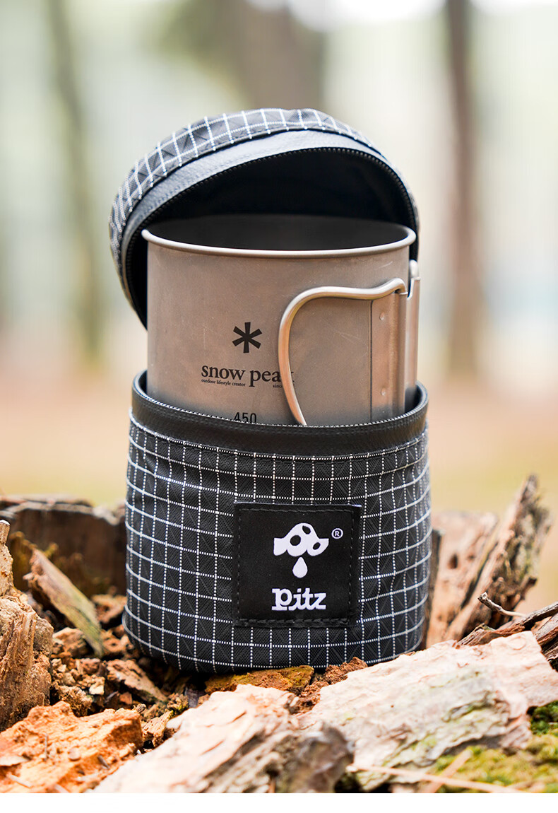 PITZ户外钛杯收纳包雪峰钛杯450ML收纳整理包露营收纳镜头包 碳黑