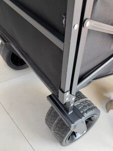 旅行推车很大,车框很结实,车轮也很宽,很结实。做工精细,安装简单方便。