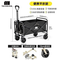 探险者(TAN XIAN ZHE)露营车儿童可躺户外露营推车营地车野营车可折叠桌板野餐车买菜车 曜石黑【静音万向轮+全钢车架】