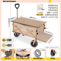 疆屿户外露营折叠小推车旅行营地野营野餐摆摊儿童可躺野餐聚拢车 卡其【聚拢越野款】+桌面+遮阳伞
