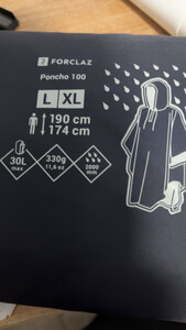 很高兴终于买到这款L的徒步雨披了,价廉物美,耐用,折叠后放登山包里不碍事,下雨也不怕了,值得一买。