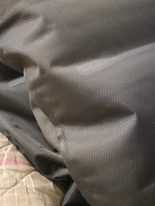 材质很好 是尼龙混纺 我买的是S码 长度54厘米适合装我的帐篷 容量35L 如果高度再小一点就完美了