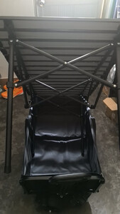 为了给大家做个参考,留下点实际,商品承重力很好,大人随便坐上去拉着走,就是桌子中间没有卡扣,一拿桌板就趐翻,若中间再有两个就完美了,露营车车布尺寸也不合,