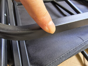 小方管骨架好于圆管骨架,车架折叠、布袋收纳简单方便,拉手有12cm的伸缩空间,布袋缝线规整不粗糙。