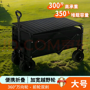 探险者(TAN XIAN ZHE)露营车坦克轮带桌板露营车户外折叠特大号快递车小拖车野餐拉车 300L 曜石黑双刹越野轮+桌板