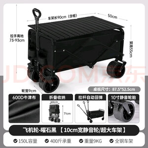 云伴户外露营折叠便携小推车野餐摆摊可折叠手推营地拖车拉杆桌板车 坦克8寸黑色豪华款+桌板套装