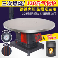 璞灶旺冬季柴火灶加厚加高农村取暖炉烧柴家用节能柴煤两用多功能回风炉 1米圆桌不锈钢(柴火炉)