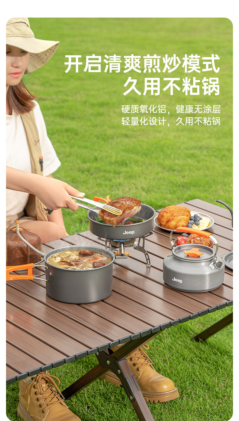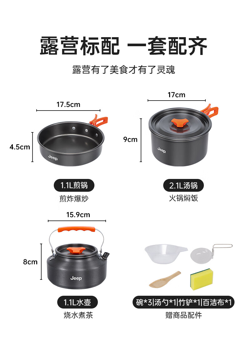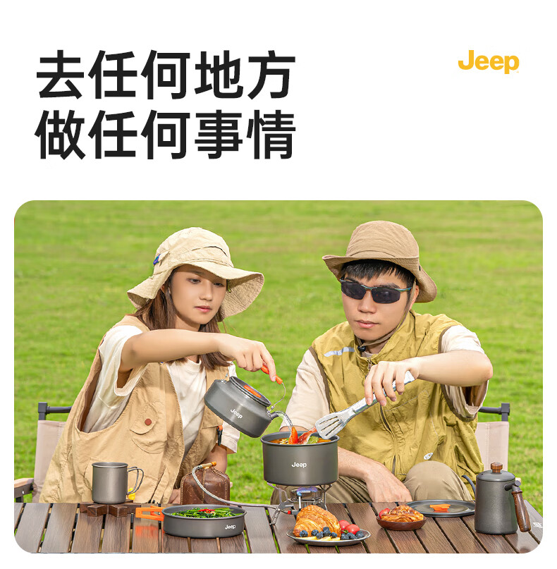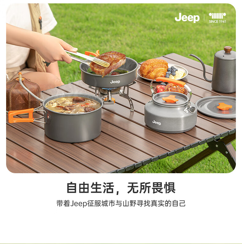 JEEP 户外猛火炉头308套锅野营防风便携气炉野外炊具自驾移动厨房露营 户外野营308套锅