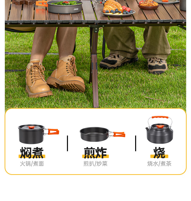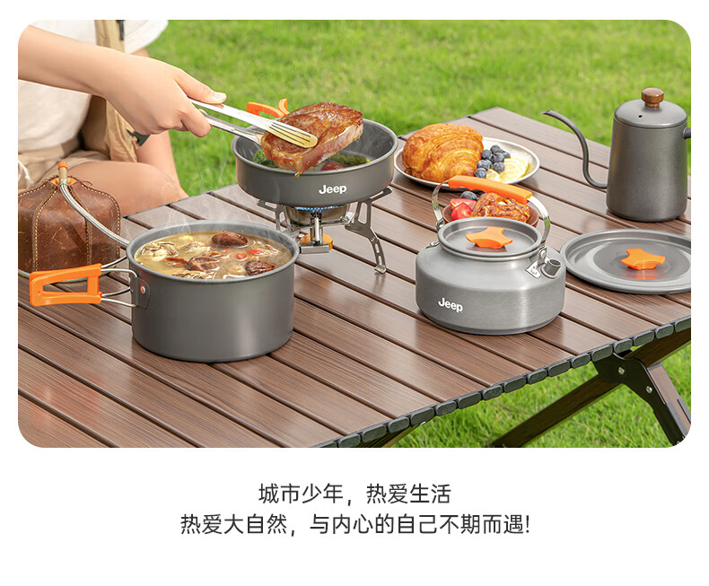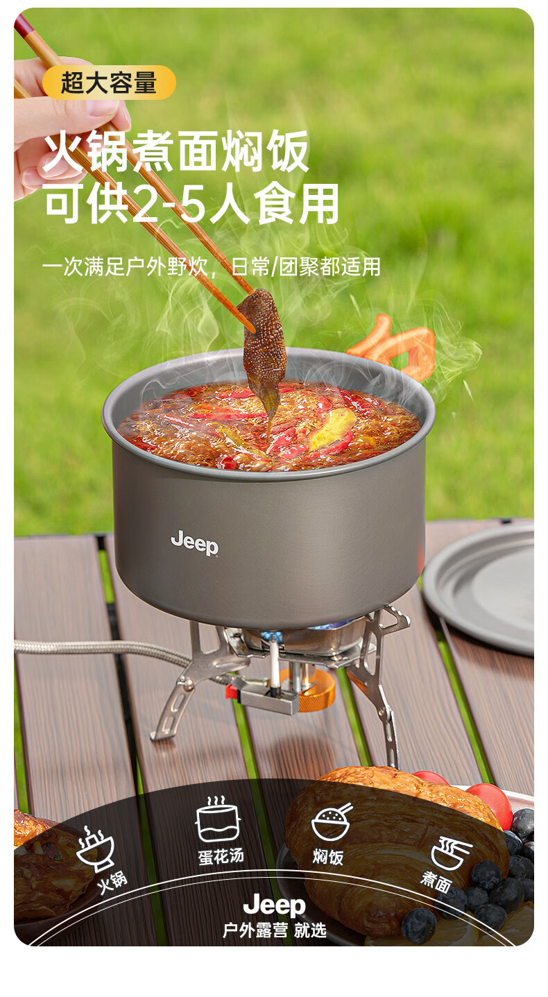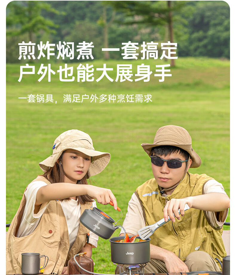 JEEP 户外猛火炉头308套锅野营防风便携气炉野外炊具自驾移动厨房露营 户外野营308套锅
