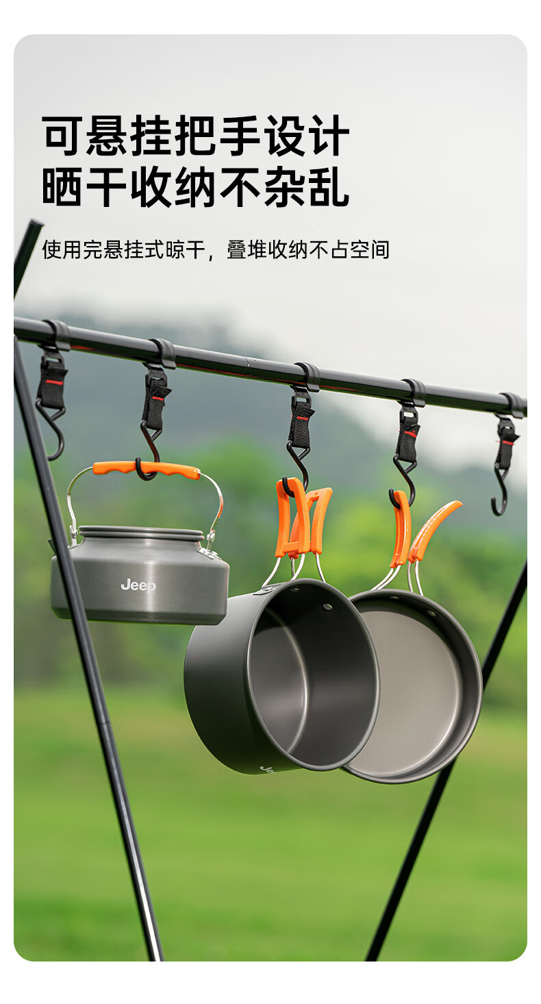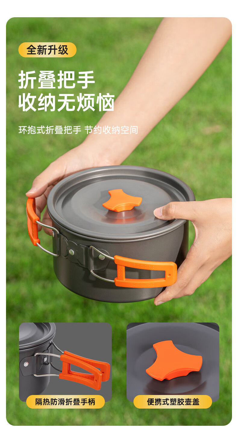 非常好用且便捷的露营锅具套装。煮水、做饭都可以轻松搞定,质量也非常好,操作简单,收纳也很方便便捷。只是铝的东西,尽量少用。有钛合金的就更完美了。