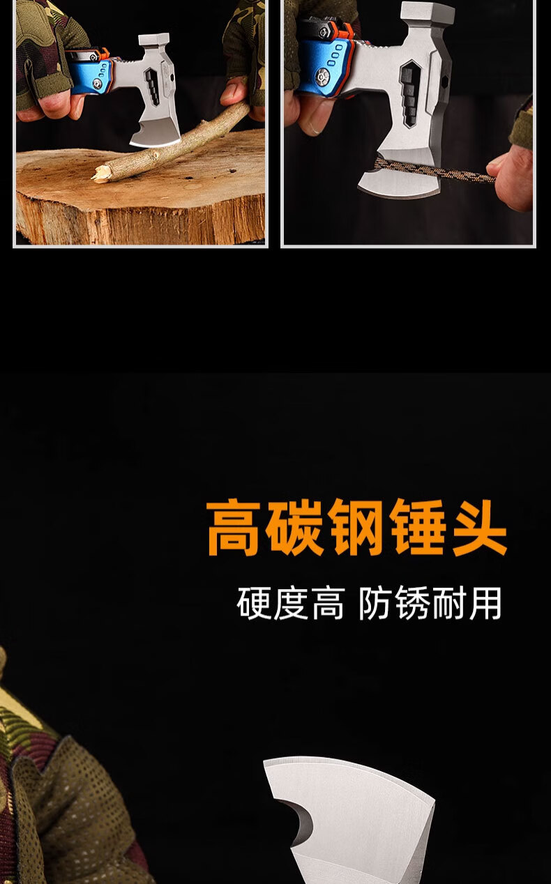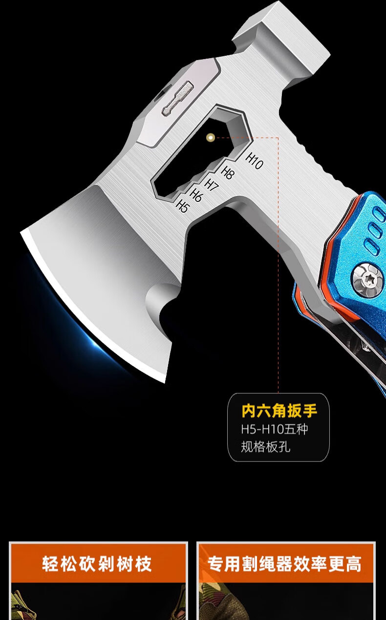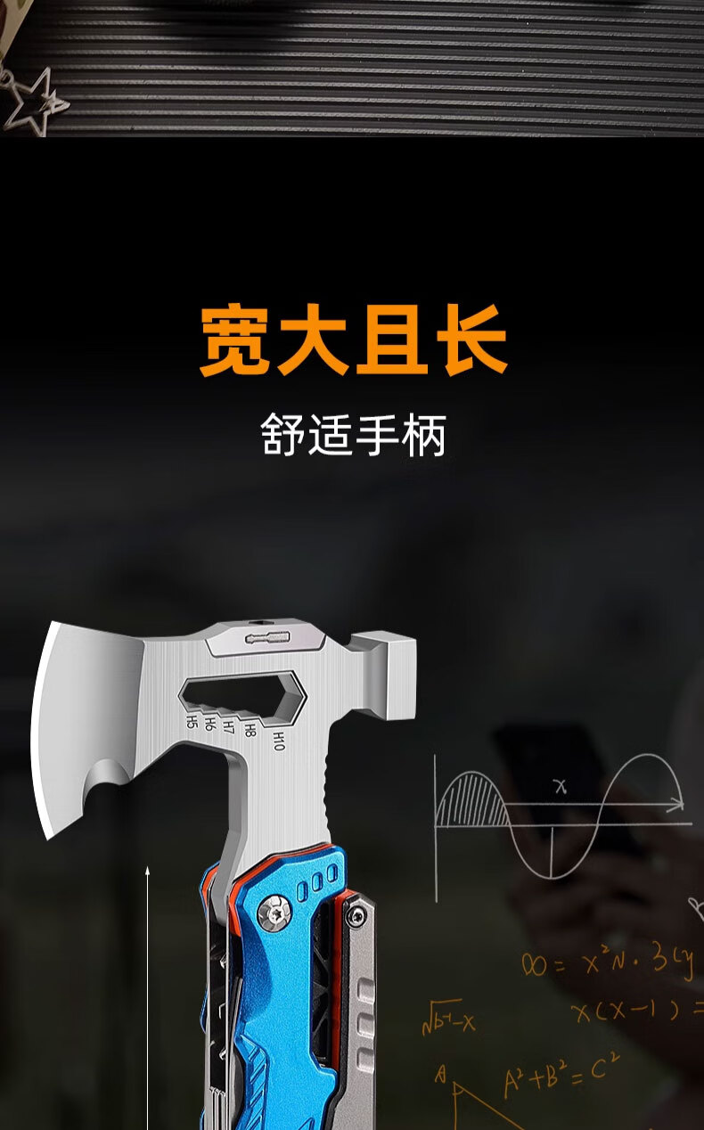 非常好的一款户外求生小工具,质量真不错,功能齐全,能满足各种所需,性价比高。真是好用的多功能斧头小工具,质量好
