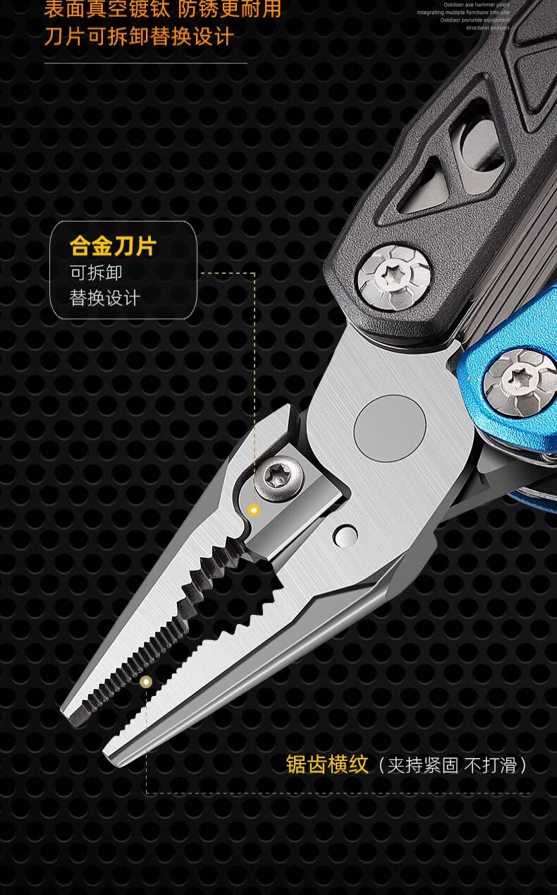 简约妮卡多功能工具钳斧子尖嘴钳户外锤子斧头组合多用钳刀便携随身折叠d1 黑色836斧头锤