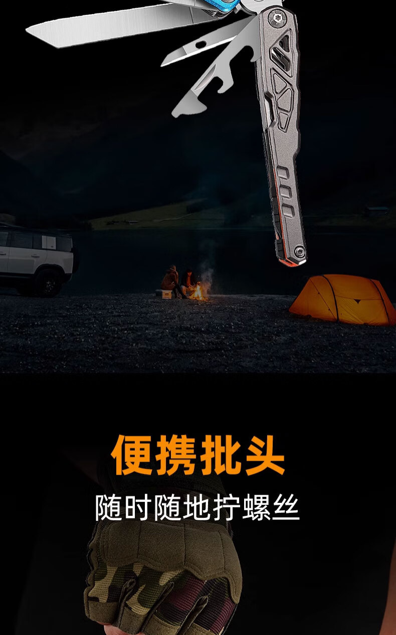 这款多功能工具非常精致大方,设计新颖,家用户外都合适,非常满意,很不错的多功能工具哦,买来放放车上应急,质量很好价格实惠