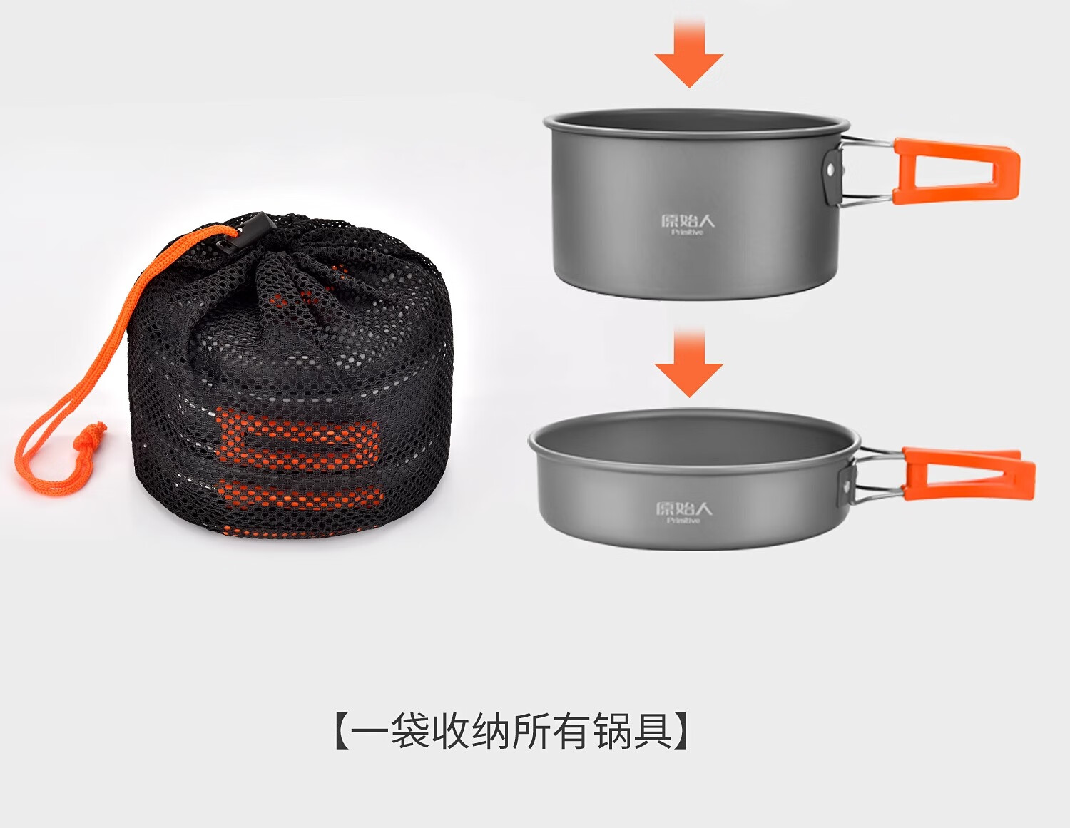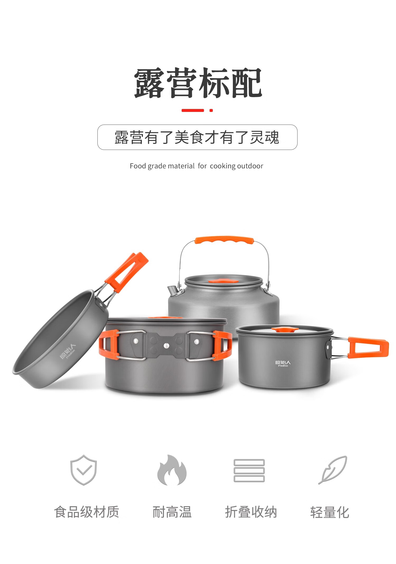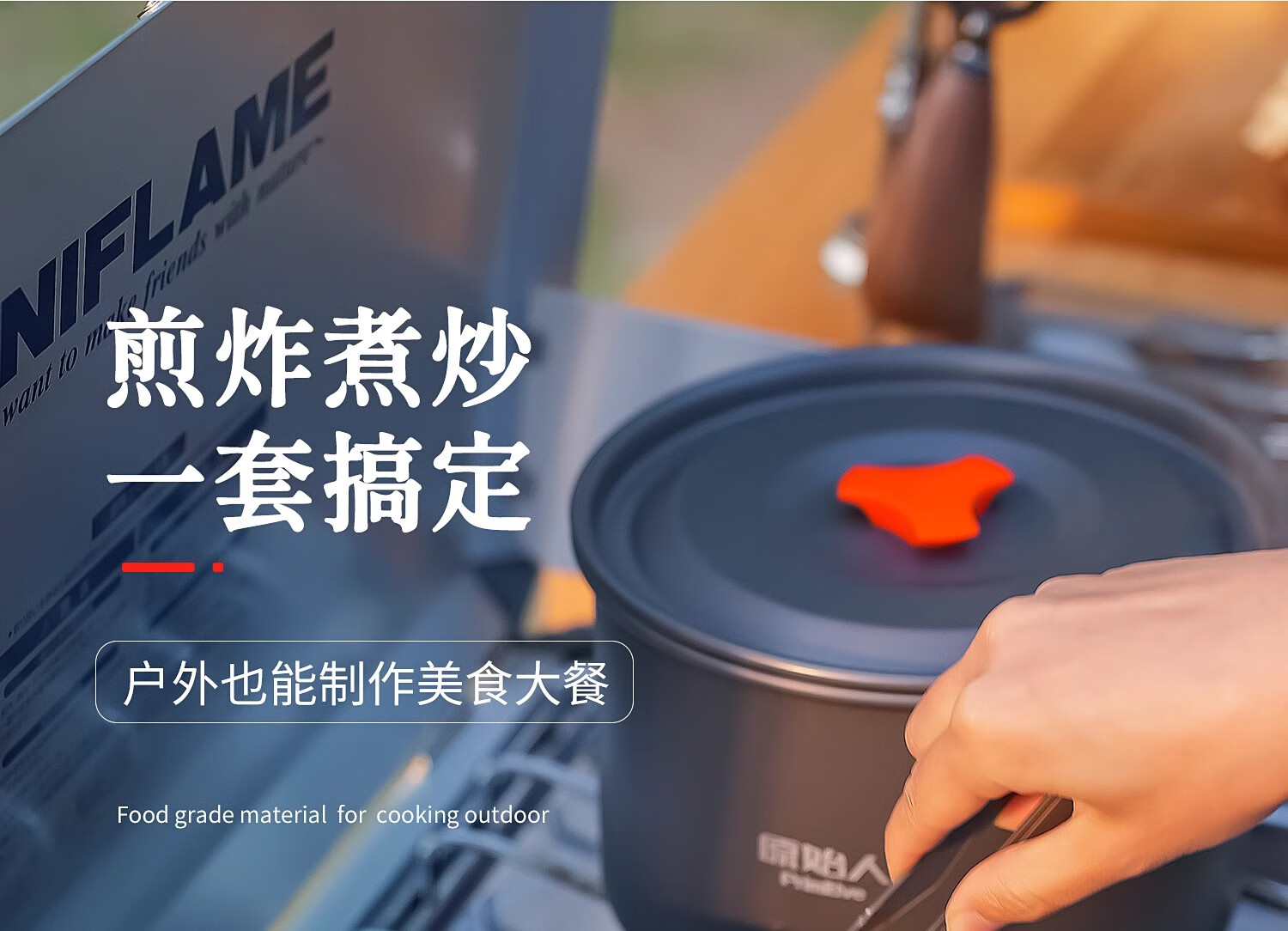 原始人户外锅具炊具露营野炊装备露营锅具便携煮锅套锅野餐锅 4L煮锅