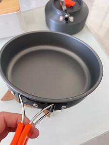 适用场景:户外露营的壶和锅终于到啦! 产品做工:做工看起来不错! 适用人数:我选的是两三个人的够用了。 重量大小:非常轻,收纳起来不占地方。还送了赠品碗和勺,非常期待出去野餐。物流到得也很快,比较愉快的一次购物。
