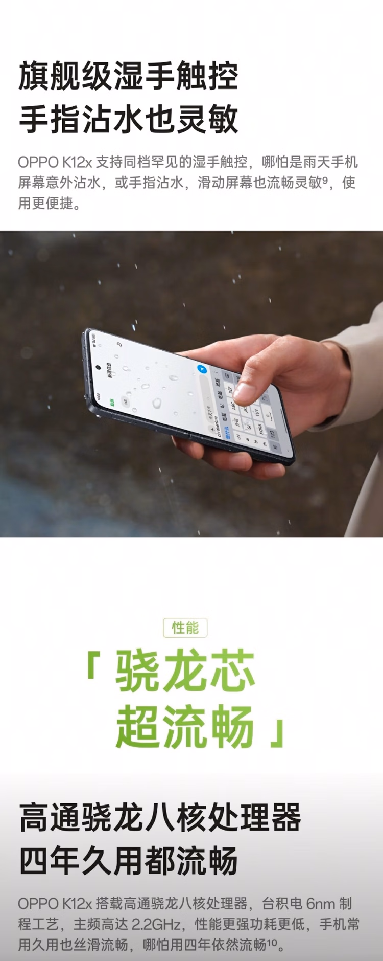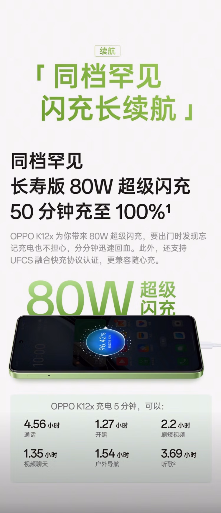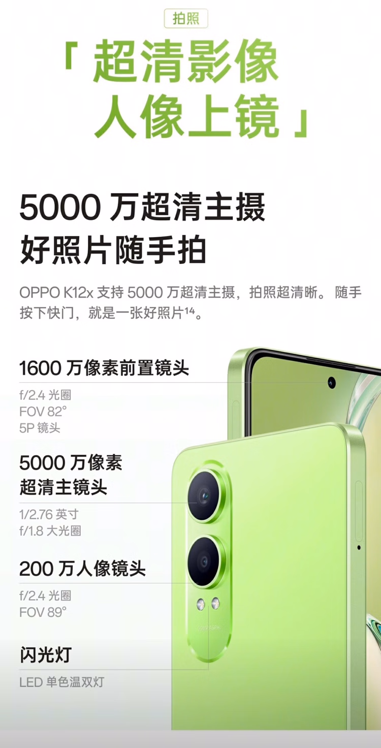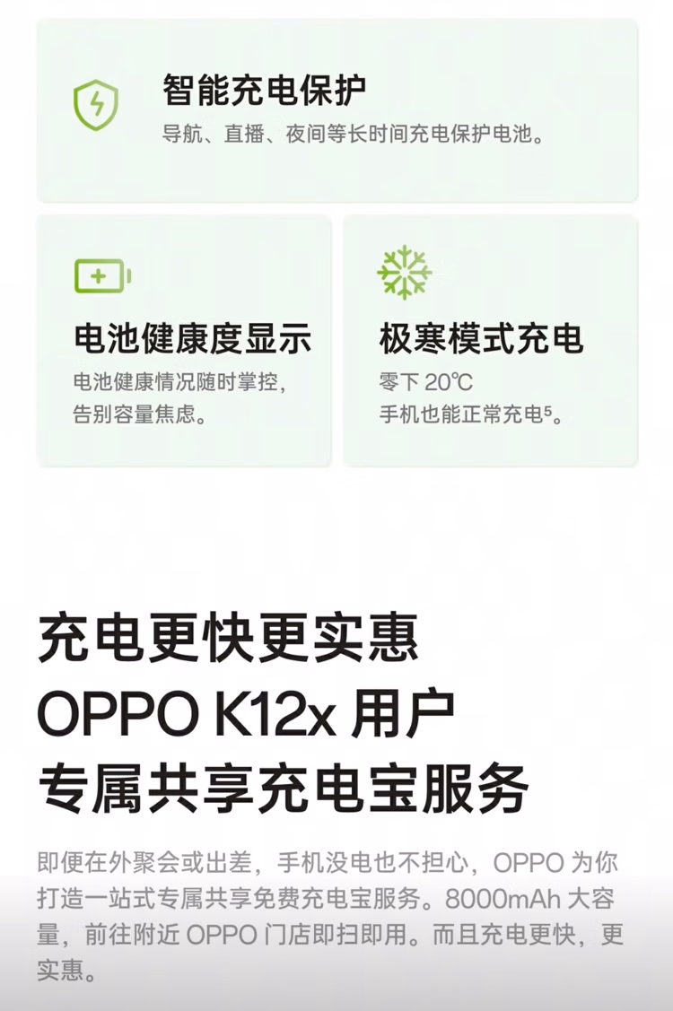 OPPO K12 Plus 第三代骁龙7旗舰芯 6400mAh大电池 120Hz护眼 5G直屏AI手机oppok12系列 凝光绿【K12x 骁龙695】 8GB+256GB