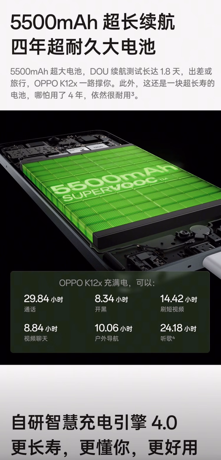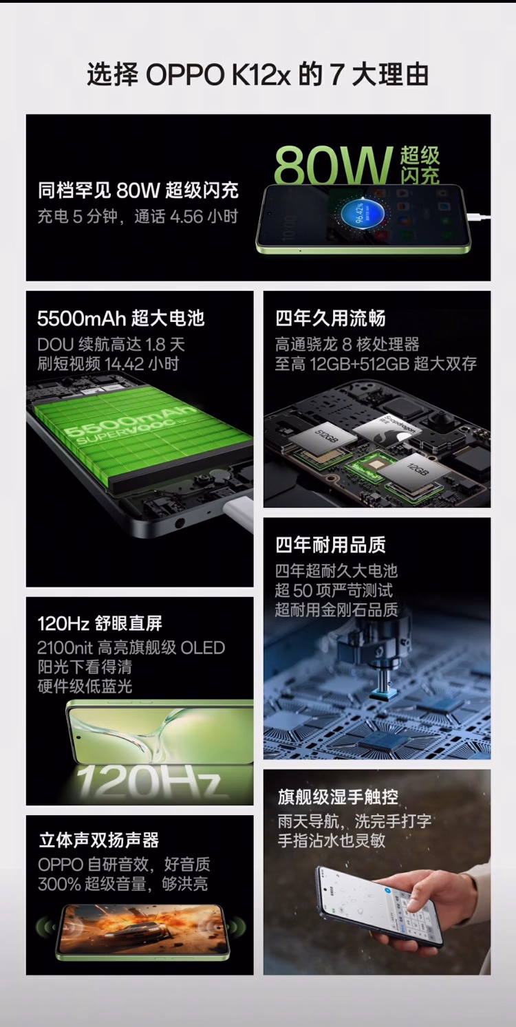OPPOK12x 5500mAh超长续航 80W闪充 轻薄机身120Hz舒眼直屏生展机神机 K12x钛空灰 12GB+512GB 单机+第三方充电器+店保1年