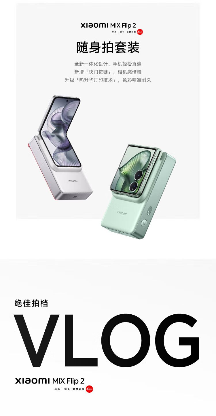 小米现货 Xiaomi MIX Flip小折叠骁龙8 拍照手机 凤羽纤维版 标准版含充电器99/12GB+256