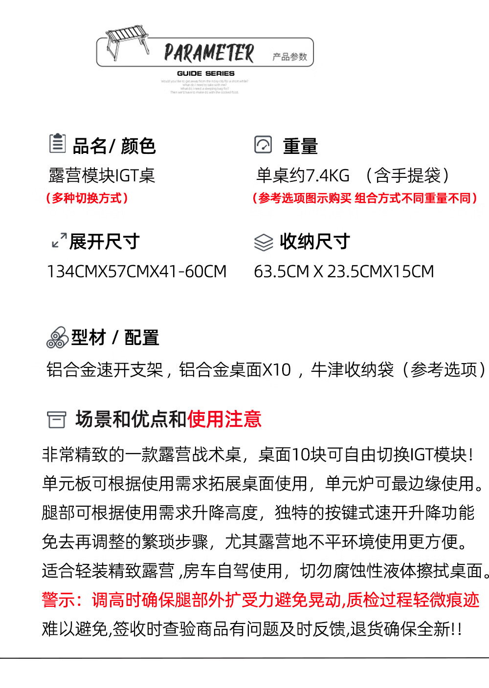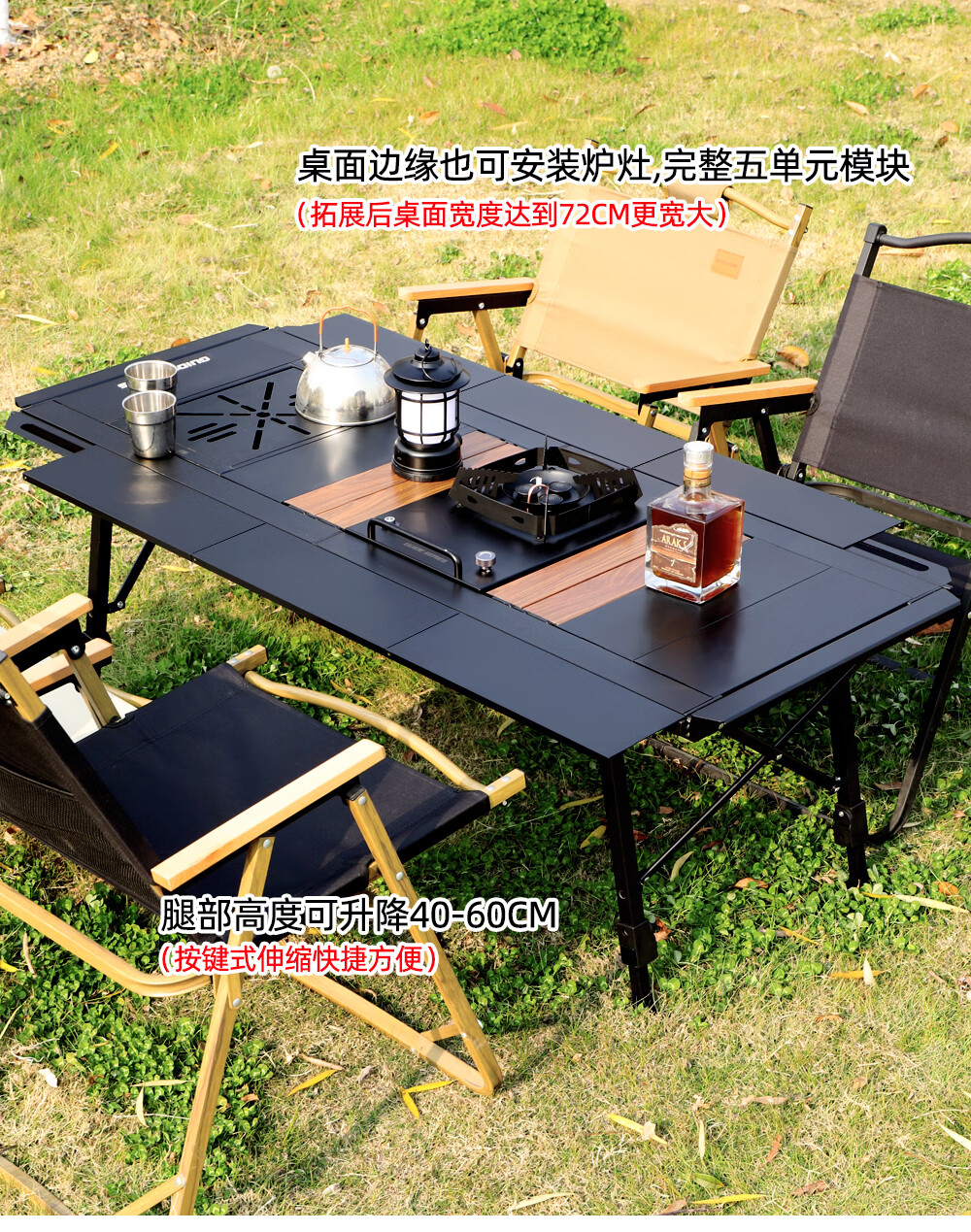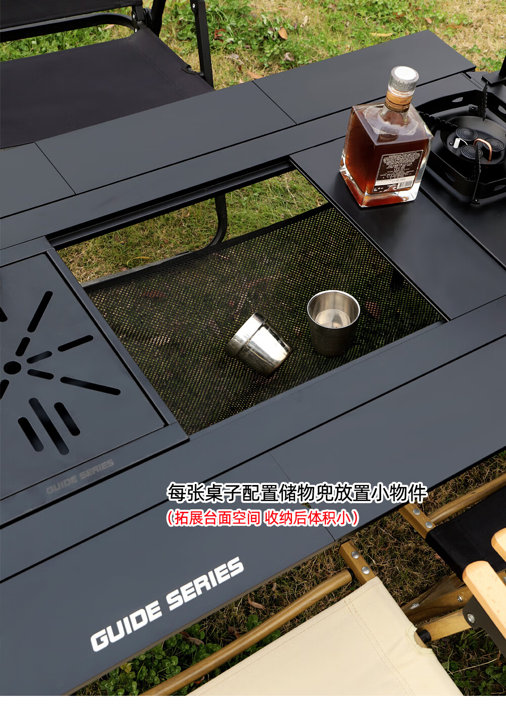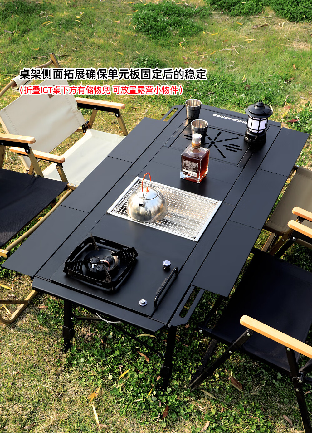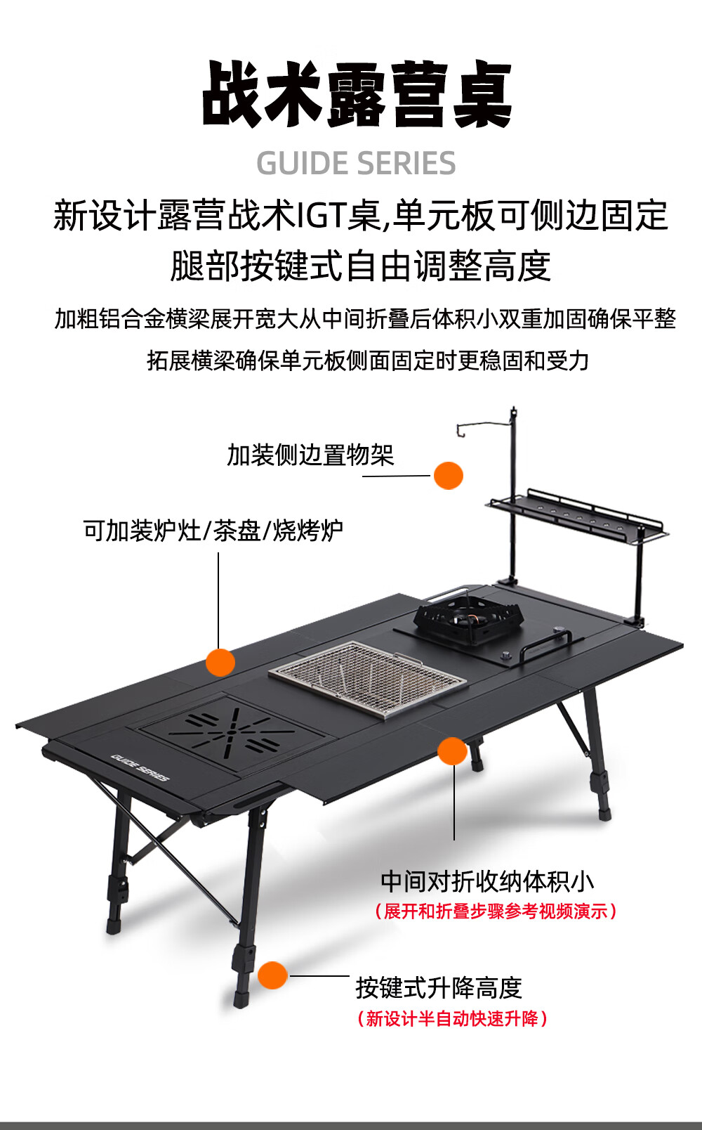 Guide Series户外露营铝合金五单元IGT桌野餐半自动升降桌可拓展折叠露营028桌 BL-028折叠IGT黑桌+黑炉+茶盘+烧烤炉