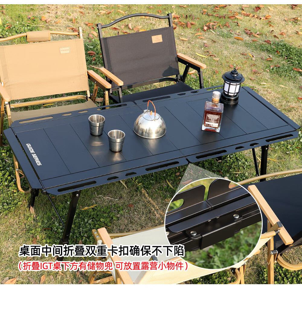 Guide Series户外铝合金折叠桌露营桌便携升降沙滩烧烤桌加宽桌自驾游车载桌 新 加宽金属 木纹黑色
