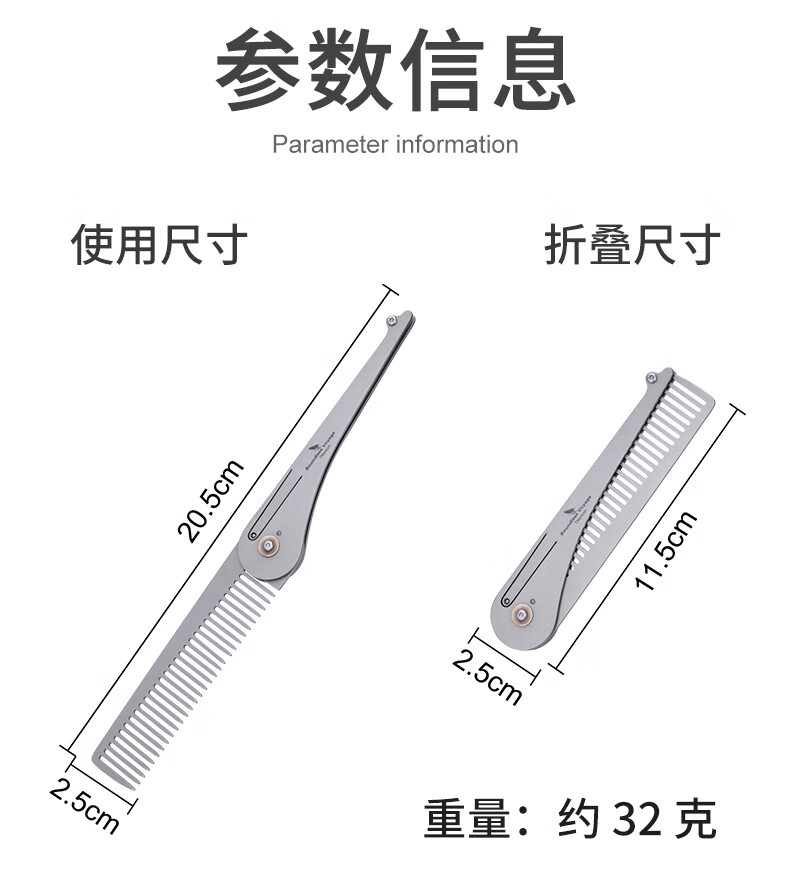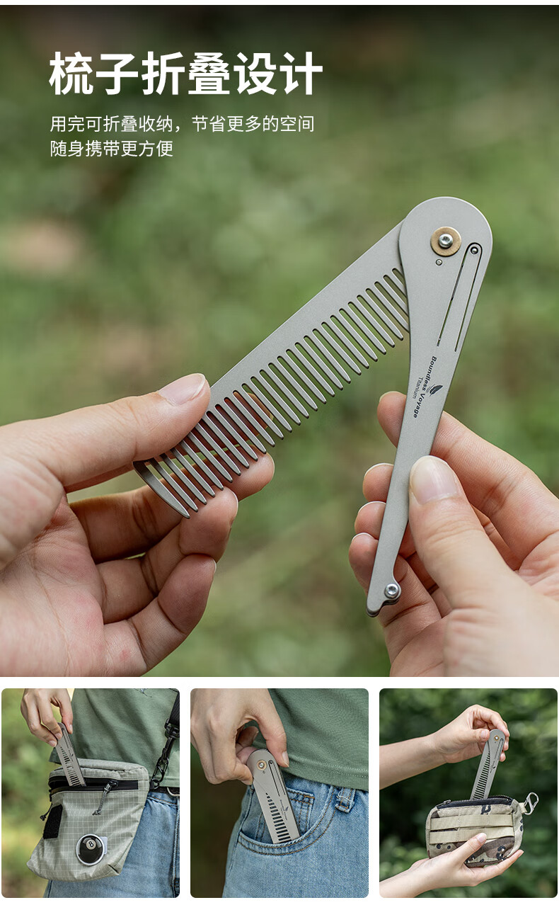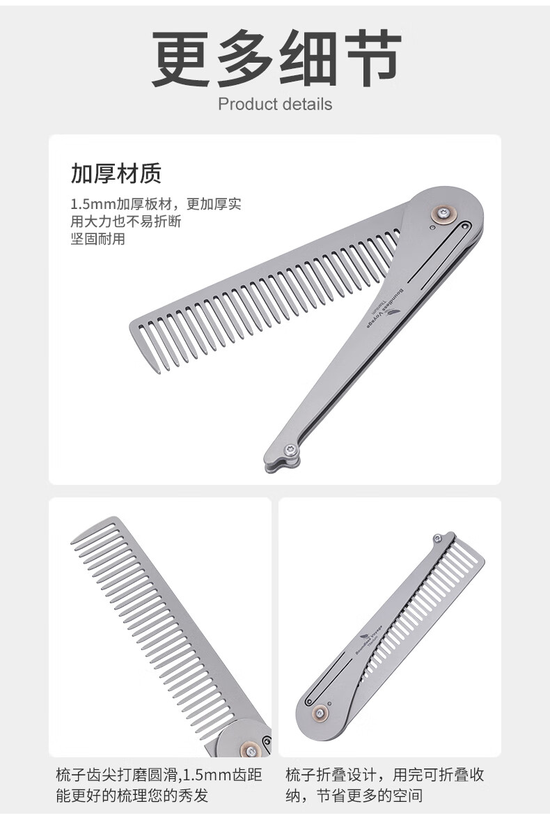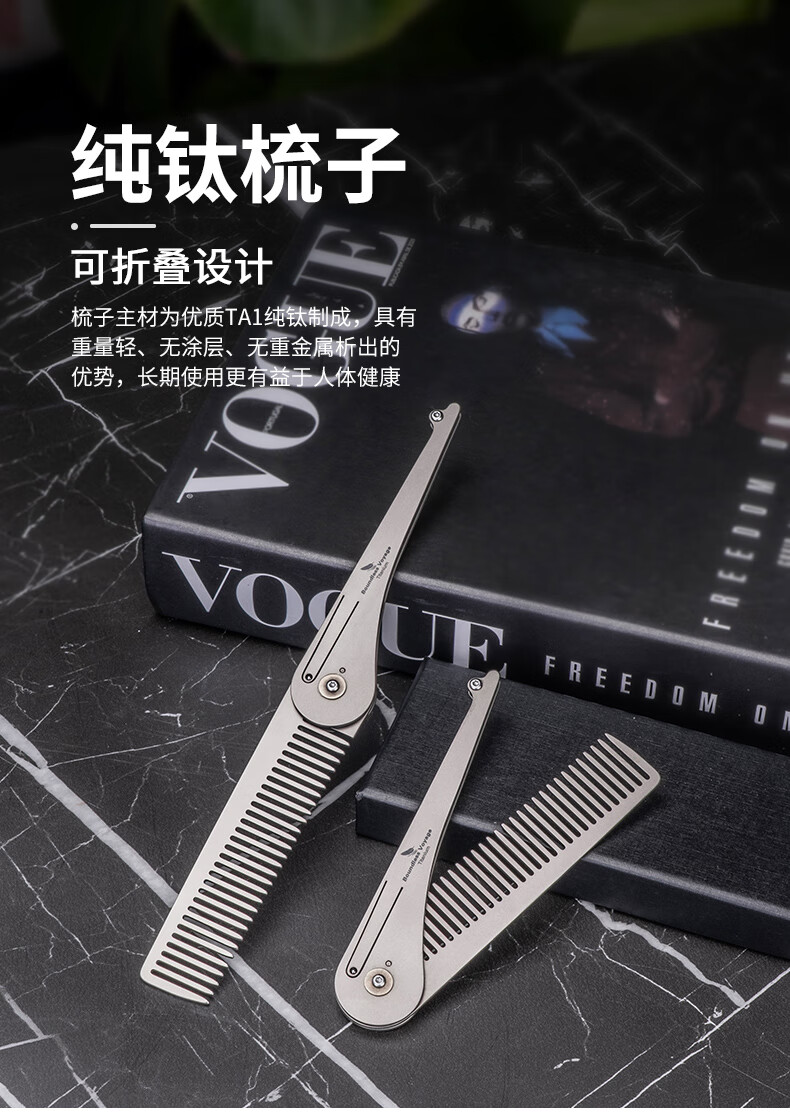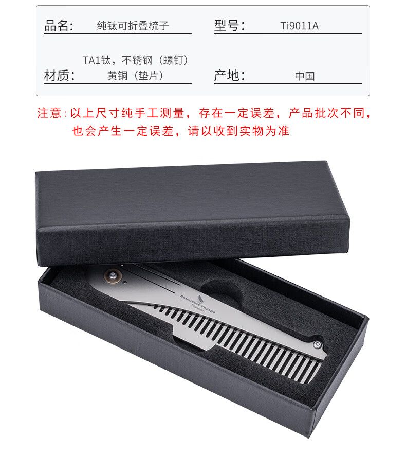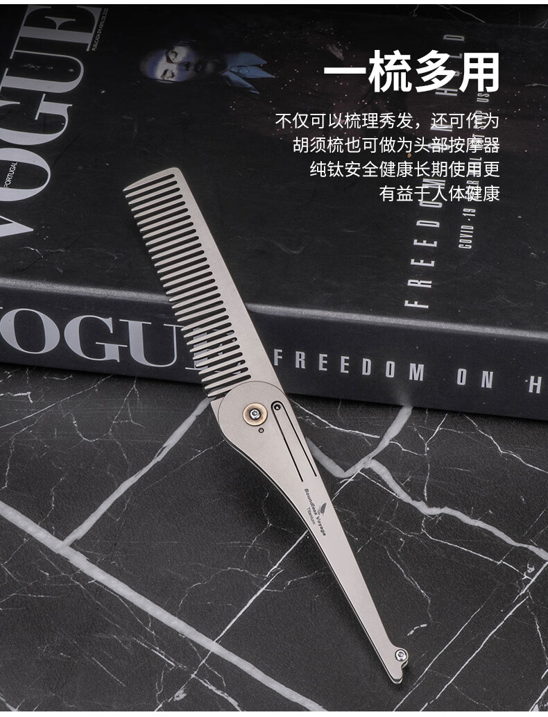 必唯纯钛户外折叠梳子便携随身梳子美发刘海梳子络腮胡迷你旅行 Ti9011A
