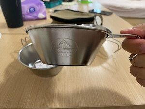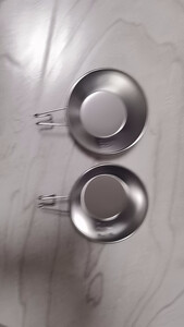 去年买了柯曼焚火台,质量特别好,这次再买一套雪拉碗。310ml小号到手,比我预想大了一点。304不锈钢食品级。做工比较精致,拿手里很漂亮。4只放配套小包里刚刚好,等着露营时用