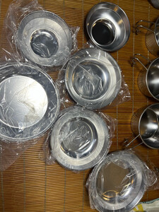 Campingmoon柯曼野餐碟8件套S395不锈钢简约水果盘便携配收纳包户外野炊碗碟 【S395-1S】餐碟4件套
