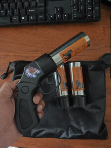金属材质,拿到手上很有感觉手感,手感非常好,迫不及待呀,顺丰快递非常给力,第二天就到了,收到马上就试了一发,很有震撼力,不错,喜欢,性价比高,放车上备用,野外防身灭火就它了。