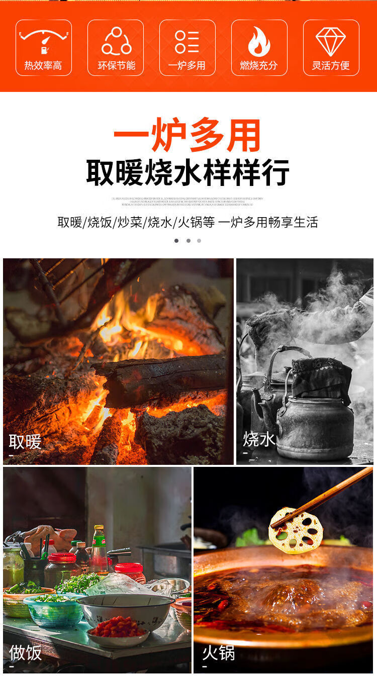 靠森(Kaooseen)【送货上门】气化炉家用室内烤火炉柴煤两用节能无烟柴火炉灶农村 单炉体无配件无内胆无底座无烟道