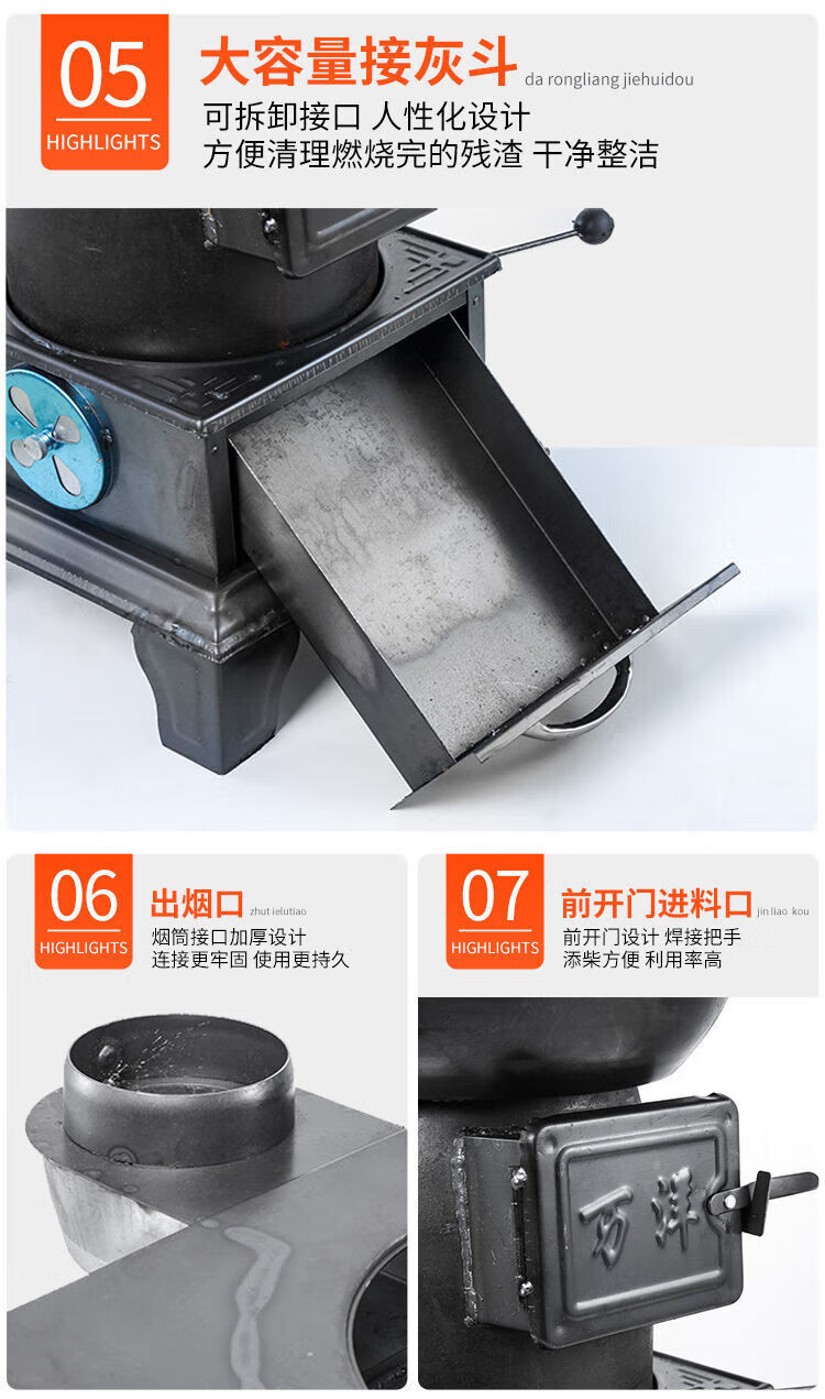 ZKHE柴煤两用取暖炉农村家用室内煤炭柴火采暖炉燃煤烧柴炉子柴火炉子 取暖炉裸炉无烟筒