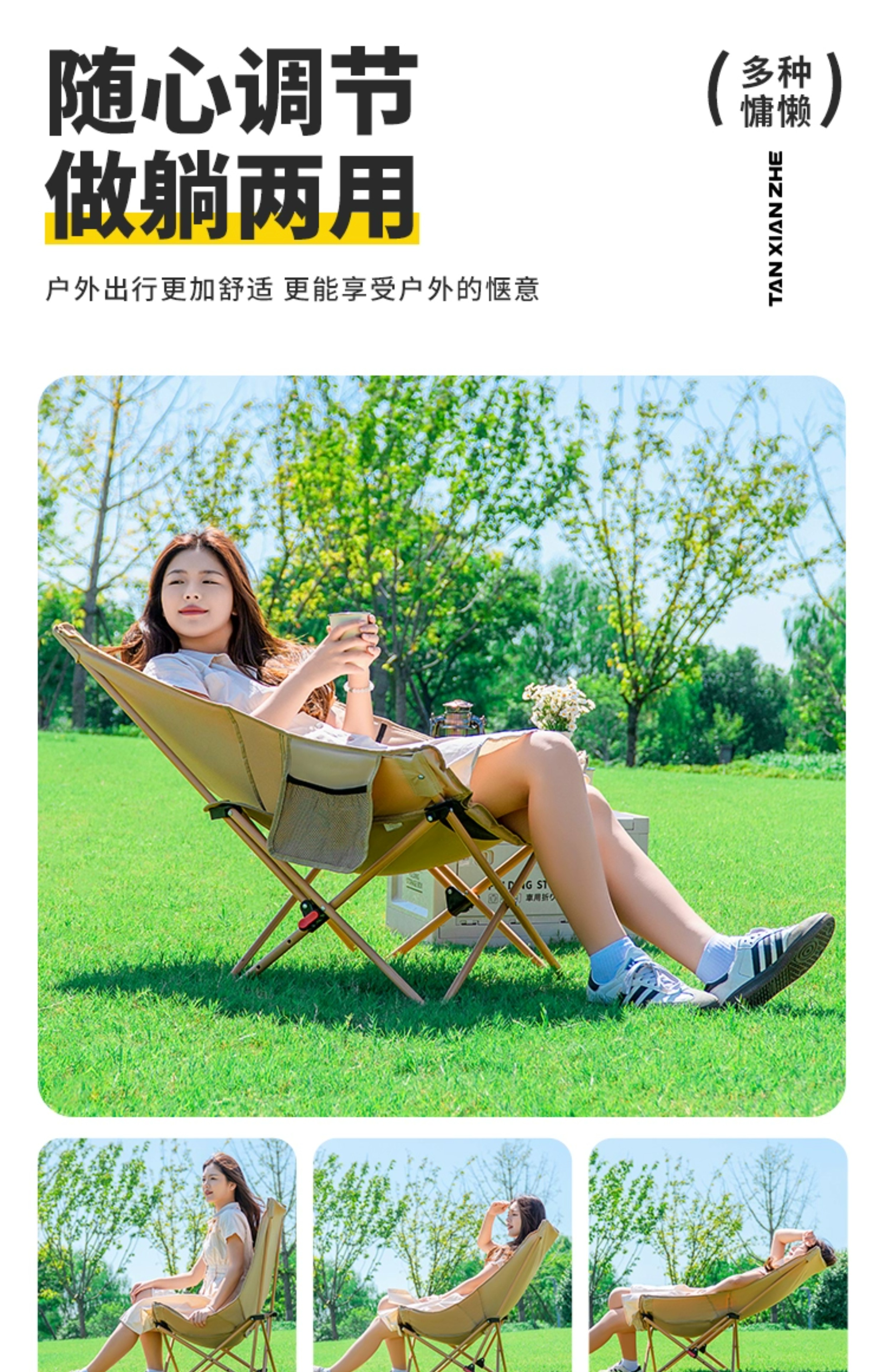 这款休闲椅非常实用,有3个躺下的档位,刚好适合各种需求。特别是脚踩在地面上,很容易保持平衡,值得点赞。