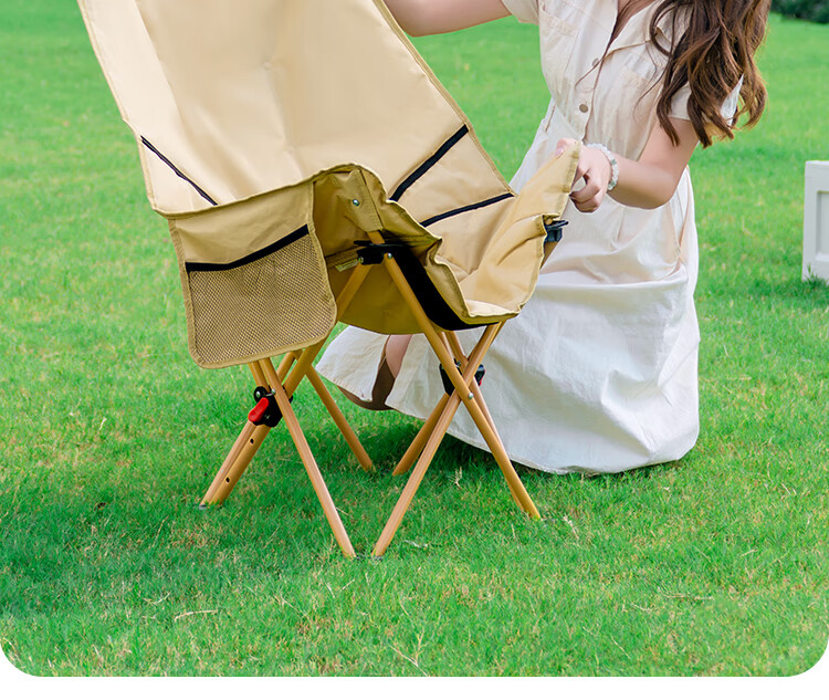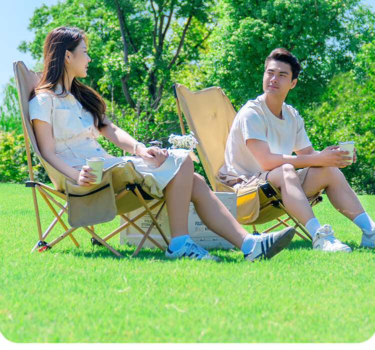 探险者(TAN XIAN ZHE)户外折叠椅露营椅月亮椅钓鱼椅便携折叠椅沙滩椅野餐桌椅全套装备 高靠背卡其*2+90款原木色蛋卷桌