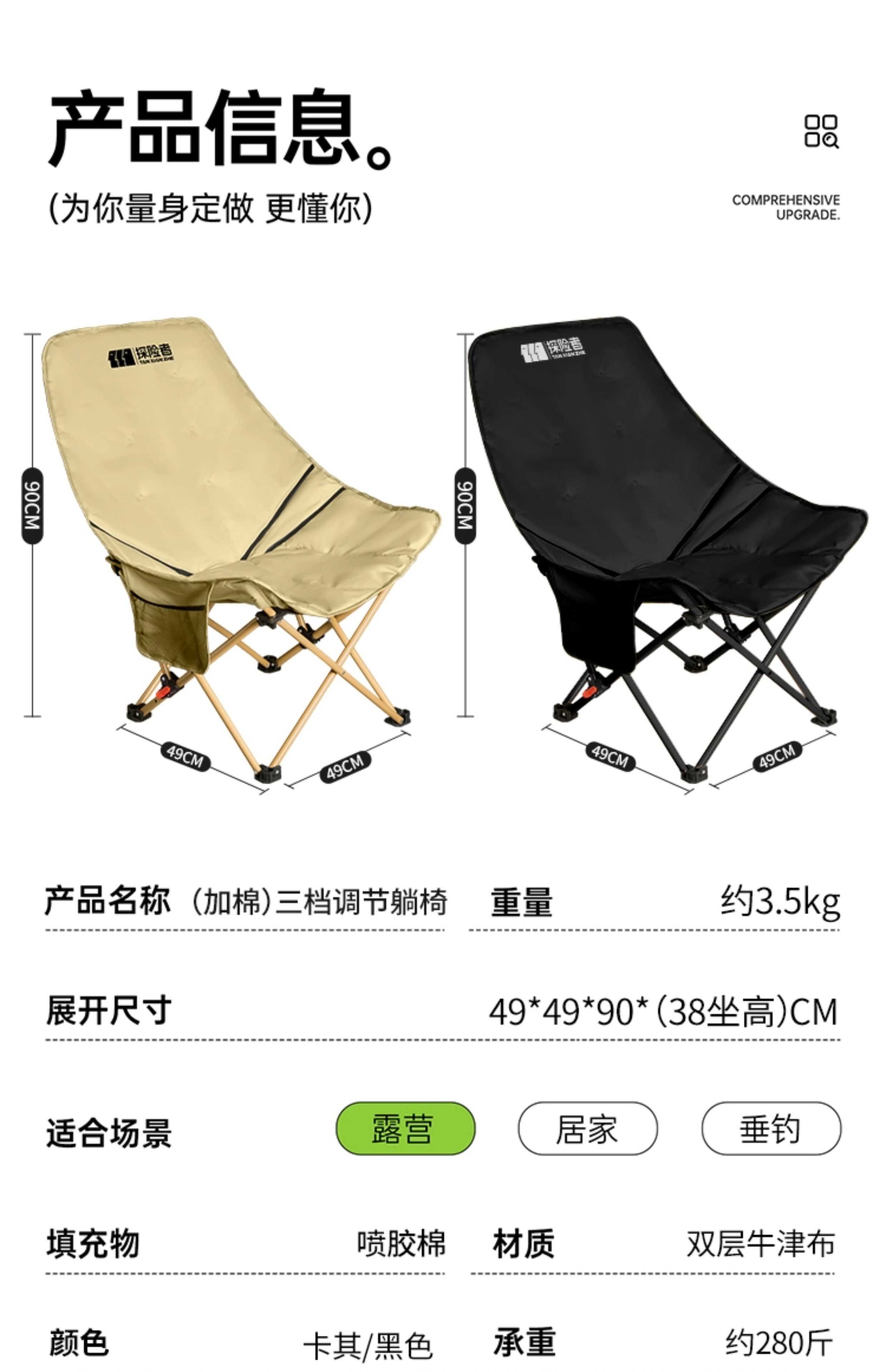 这款躺椅看起来非常的牢靠,下单的时候还在担心会不会不耐用,到货后完全消除了我的疑虑。质量非常好,收纳方便,便于携带,价格也不贵。三面包围,坐起来包裹性强、很舒适,头枕也是加厚的,非常不错。非常推荐大家购买,物流速度快。