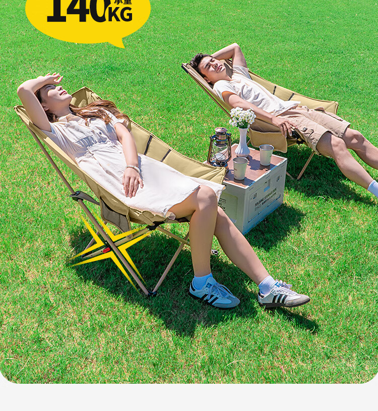 探险者(TAN XIAN ZHE)户外折叠椅子可躺可睡月亮椅躺椅露营折叠桌椅全套装备便携沙滩椅 卡其躺椅*2+90款原木色蛋卷桌