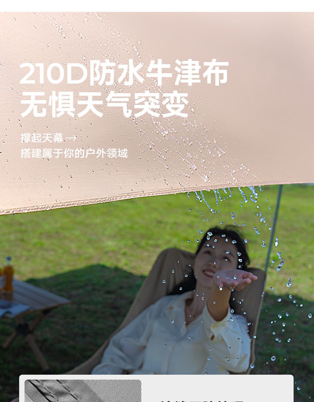 这款天幕太实用!防晒效果一流,布料厚实又耐磨。搭建简单不费力,空间宽敞,遮阳面积大,户外露营、野餐撑起清凉小天地,太值了!