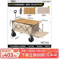原始人户外露营折叠推车营地车手拉拖车野餐野营拖车遛娃便携买菜小拉车 420L 浅卡其-万向轮+可后开+桌板